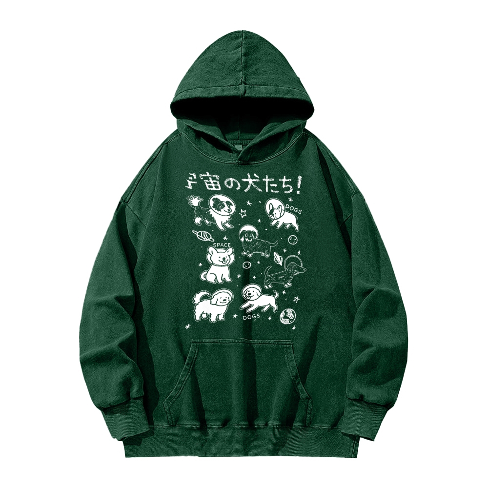 Tokyo-Assassin Dog In Space Funny Kawaii Japanese Vintage Washed Hoodie