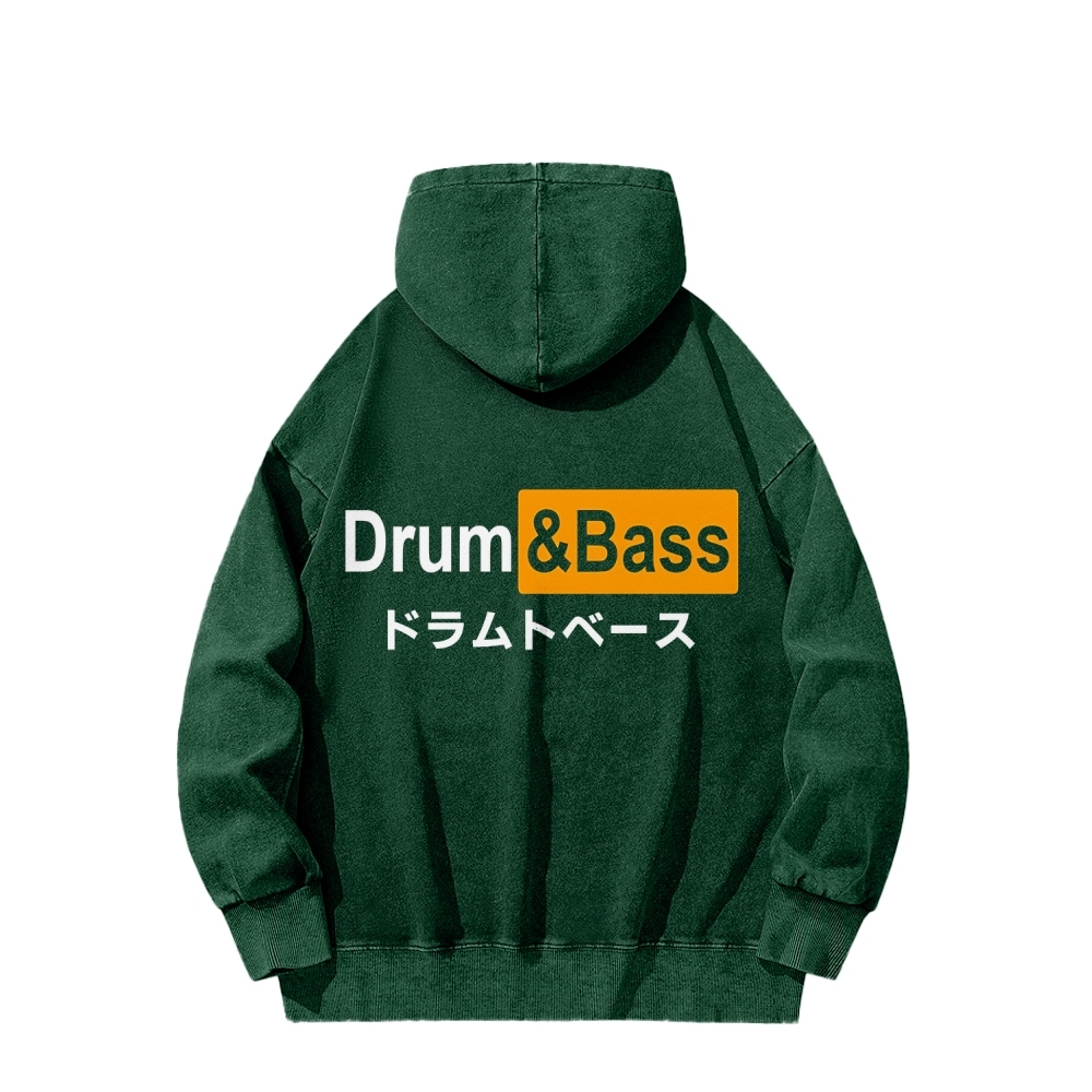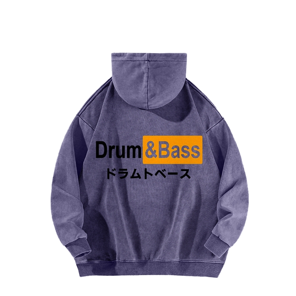 Tokyo-Assassin Drum And Bass Front And Back Printing Vintage Washed Hoodie