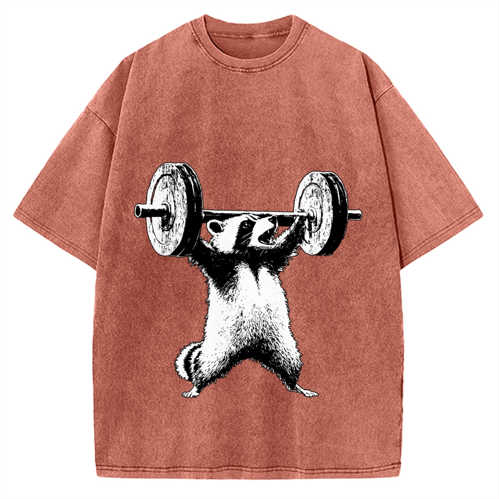 Tokyo-Assassin Funny Deadlift Raccoon Meme Vintage Washed T-shirt
