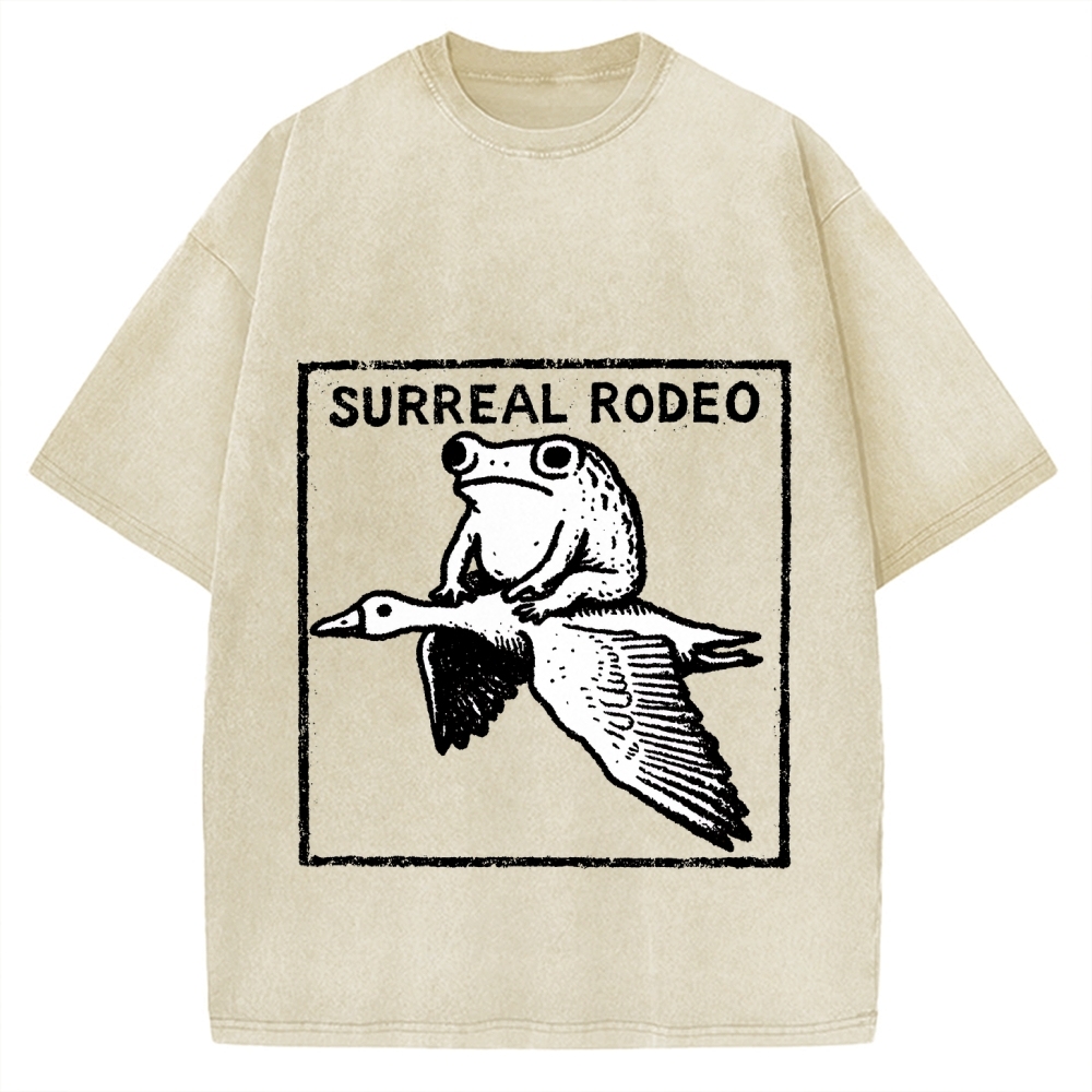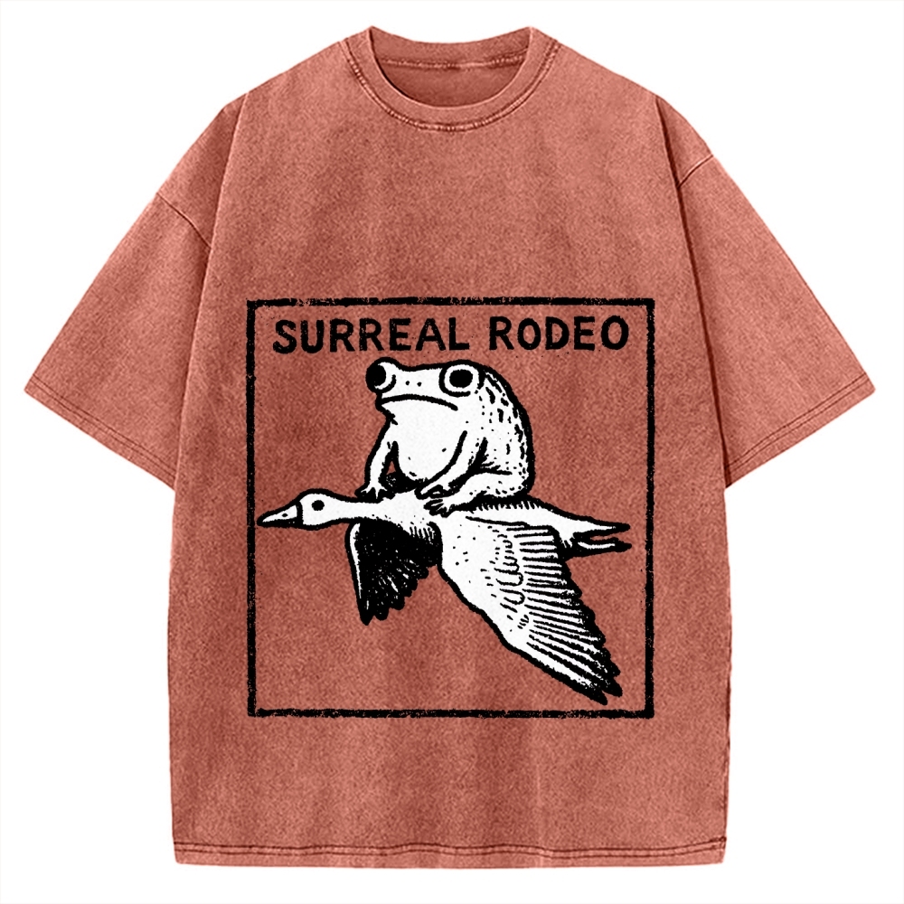 Tokyo-Assassin Funny Frog riding a goose Surreal Rodeo Vintage Washed T-shirt