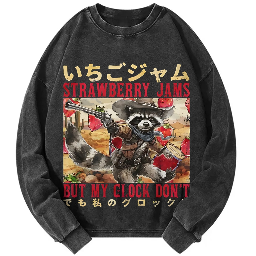 Tokyo-Assassin Funny Raccoon Cowboy Strawberry Jams Vintage Washed Sweatshirts
