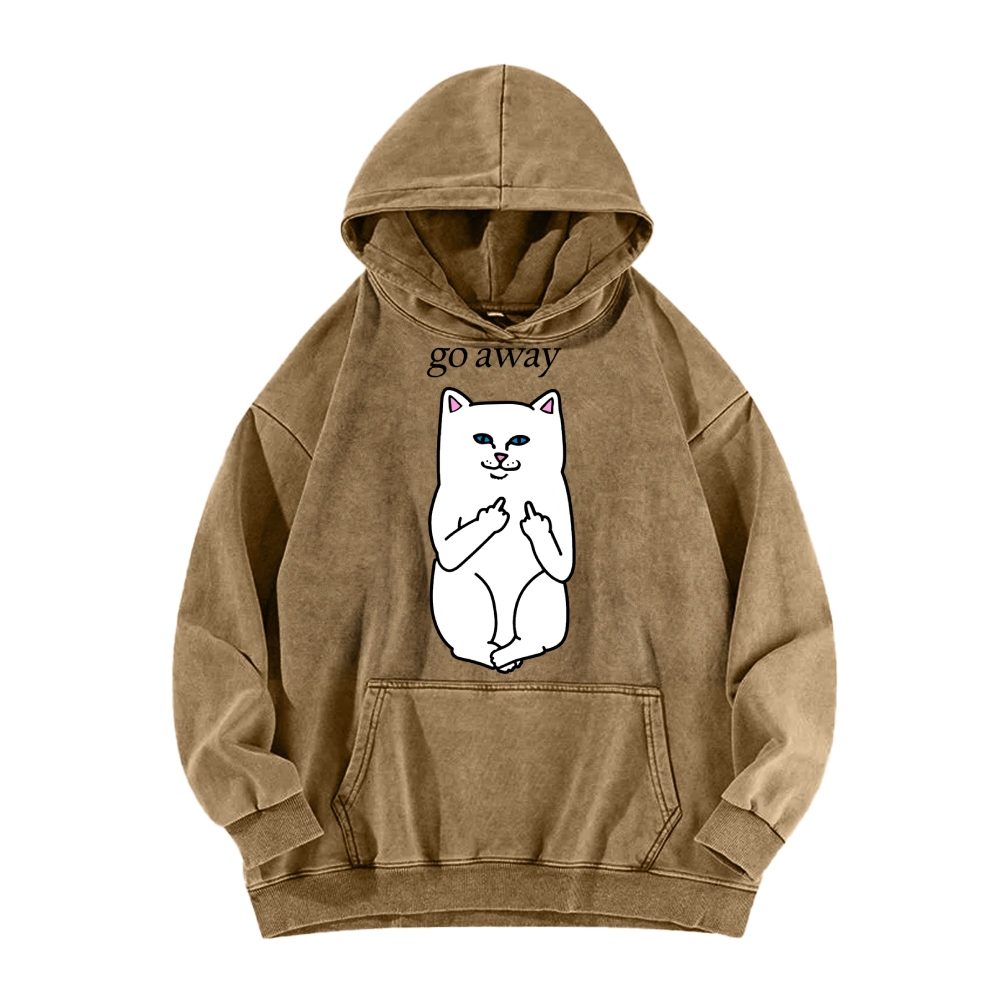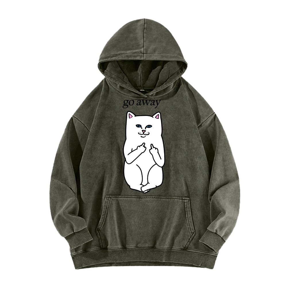 Tokyo-Assassin Go Away Angry Cat Vintage Washed Hoodie