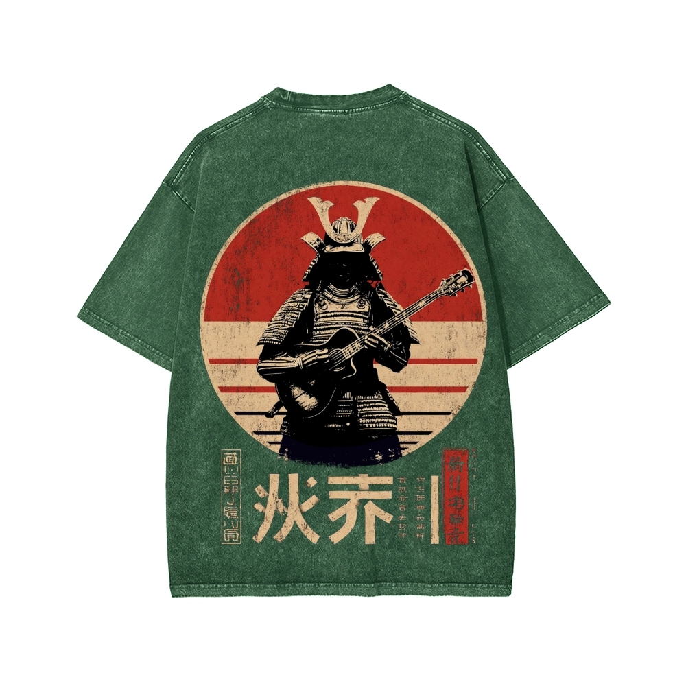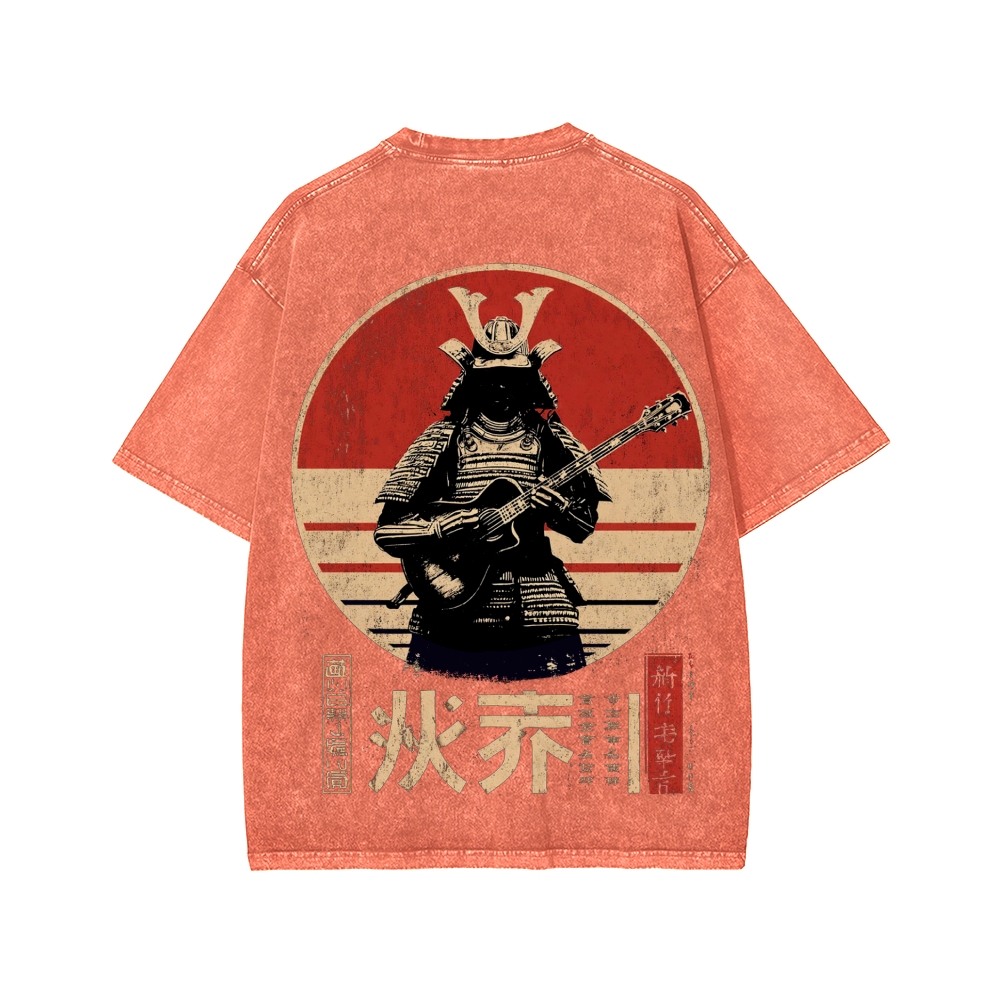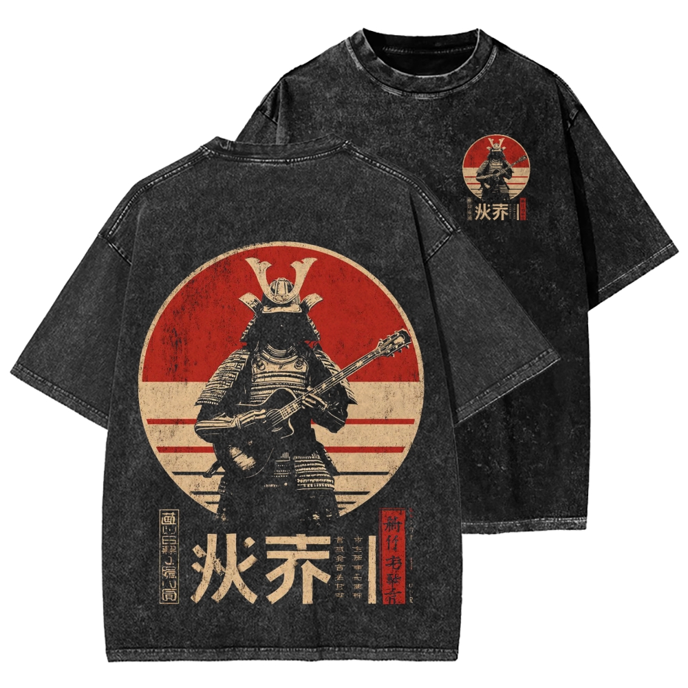 Tokyo-Assassin Guitarist Samurai Japanese Style Front And Back Printing Washed T-shirt