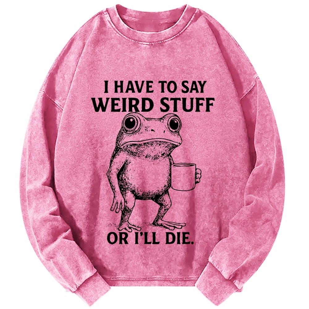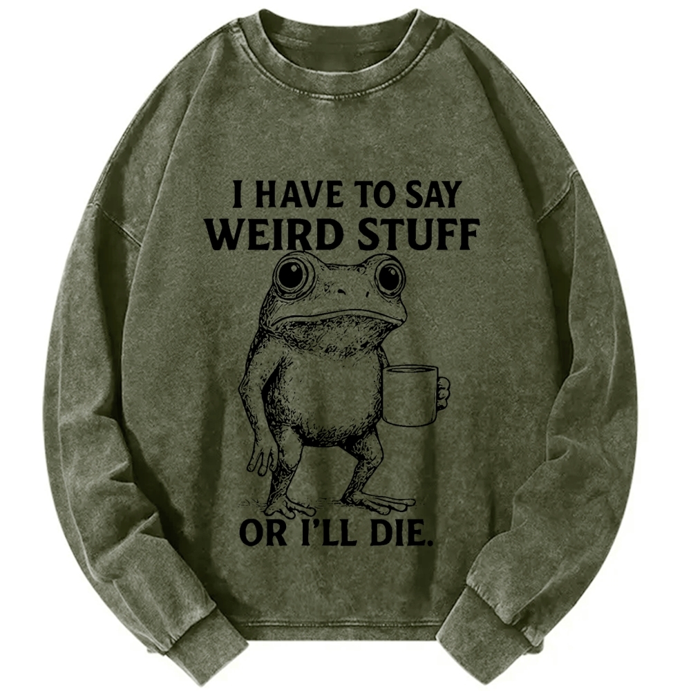 Tokyo-Assassin I HAVE TO SAY WEIRD STUFF OR I‘LL DIE Funny Frog Vintage Washed Sweatshirts