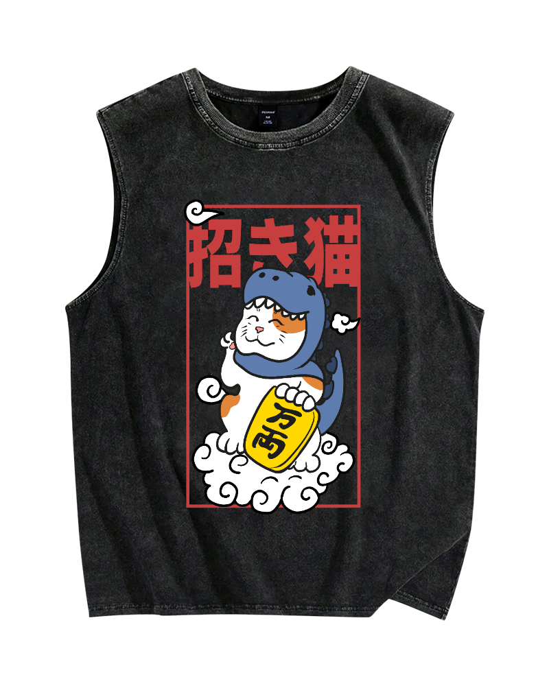 Tokyo-Assassin Japan Lucky cat Vintage Distressed Washed Tank Top