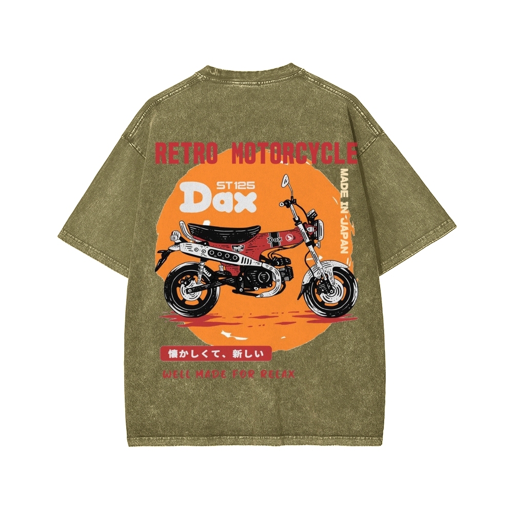 Tokyo-Assassin Japan Retro Motorcycle Dax 125 Front And Back Printing Washed T-shirt