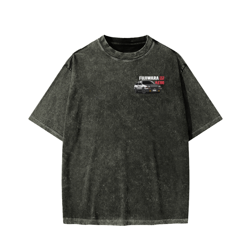 Tokyo-Assassin Japanese Racing Car AE86 Fujiwara Initial D Anime Game Front And Back Printing Washed T-shirt
