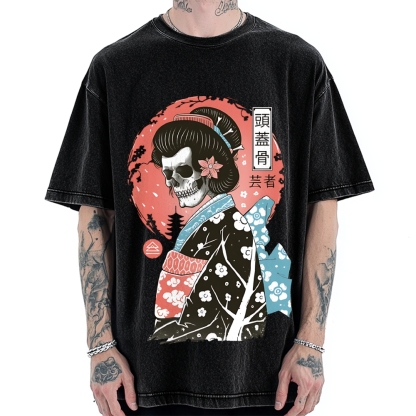 Tokyo-Assassin Japanese Skeleton Geisha Vintage Washed T-shirt