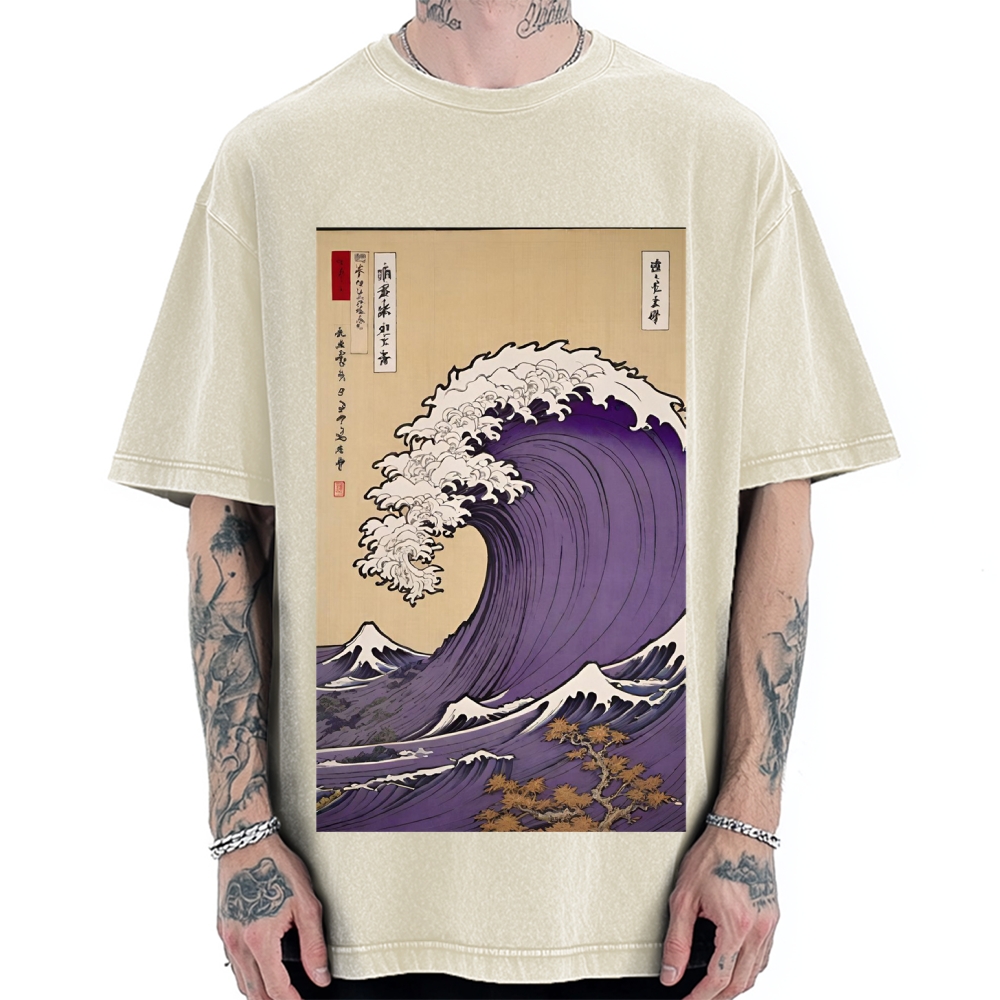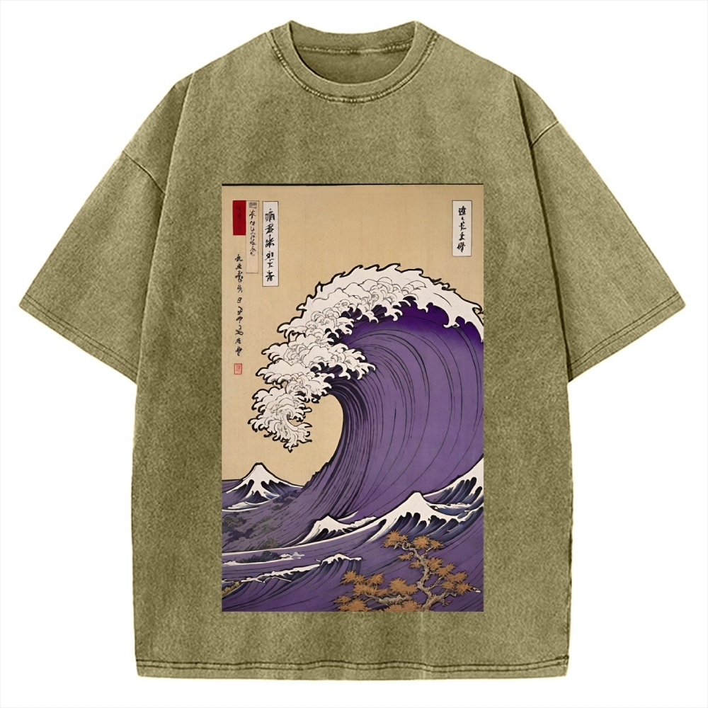Tokyo-Assassin Japanese Wave Ukiyo-E Style Vintage Washed T-shirt