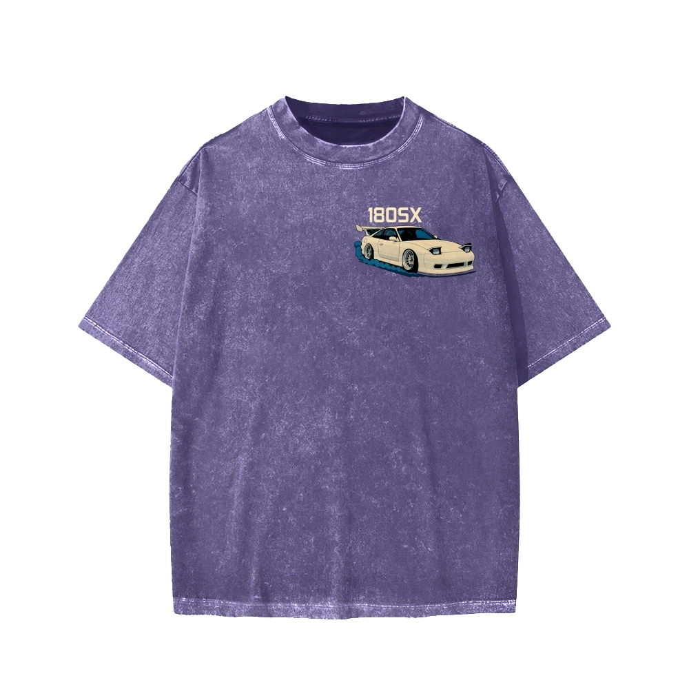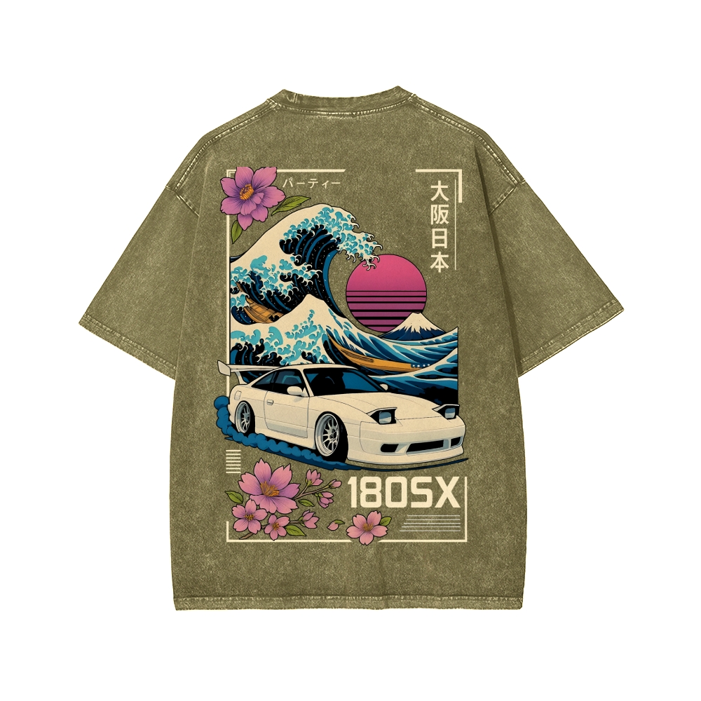 Tokyo-Assassin JDM Nissan 180SX Osaka Drift Art – Great Wave Sakura Front And Back Printing Washed T-shirt