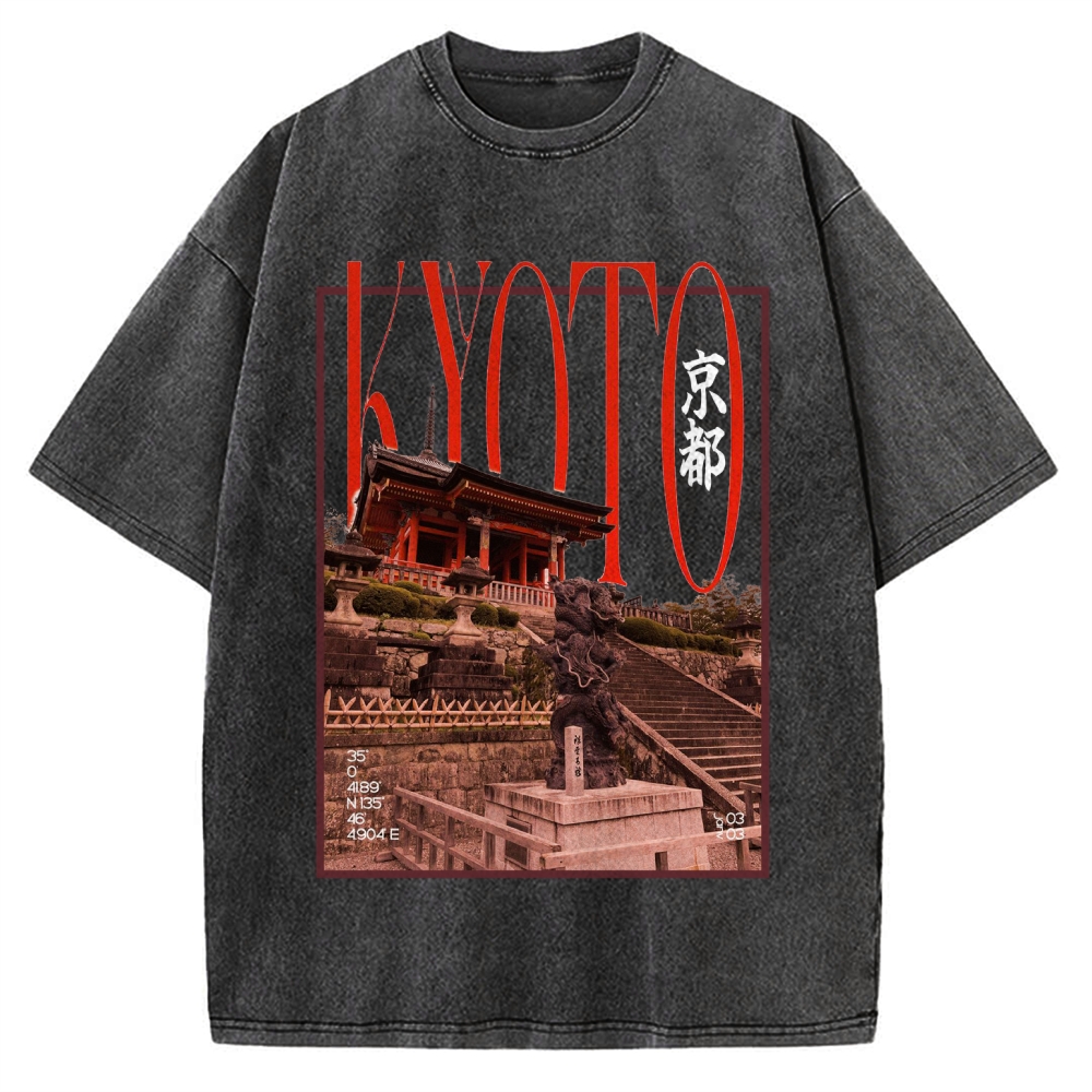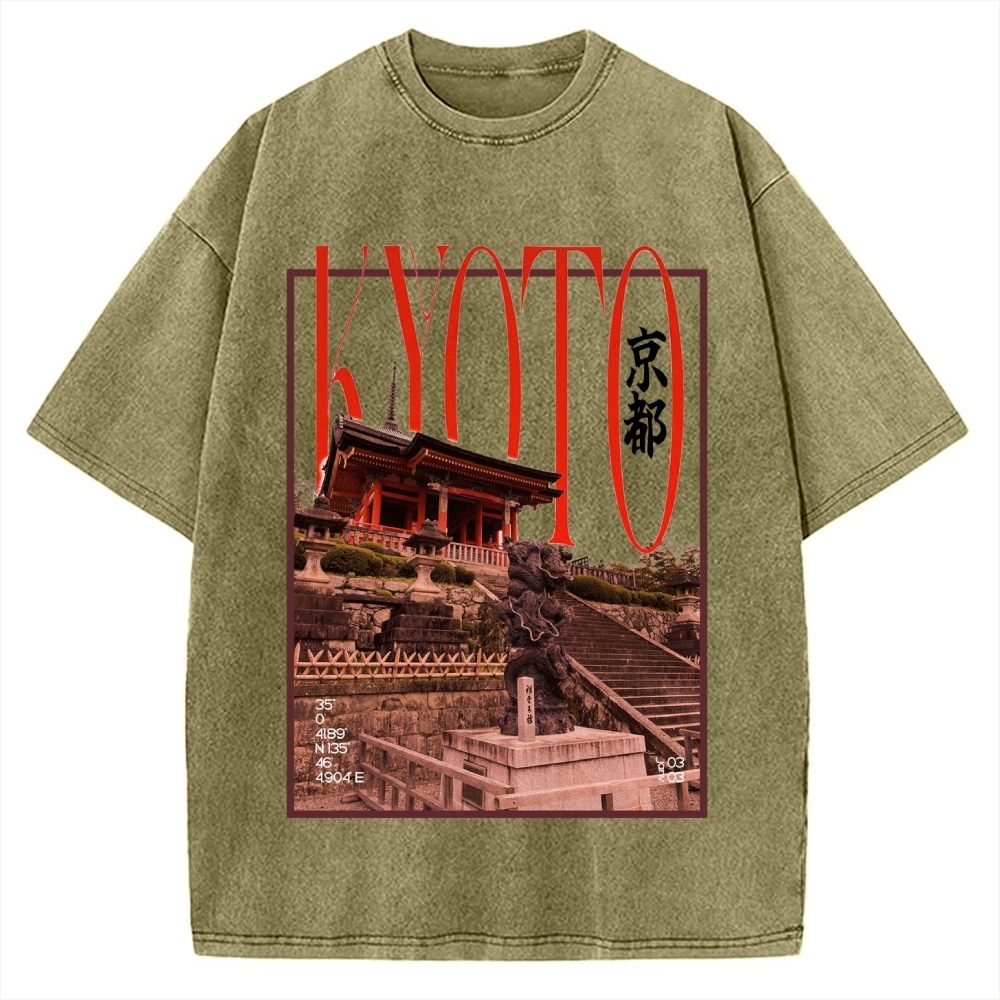 Tokyo-Assassin Kyoto Otera Japanese Temple Traditional landscape Building Vintage Washed T-shirt