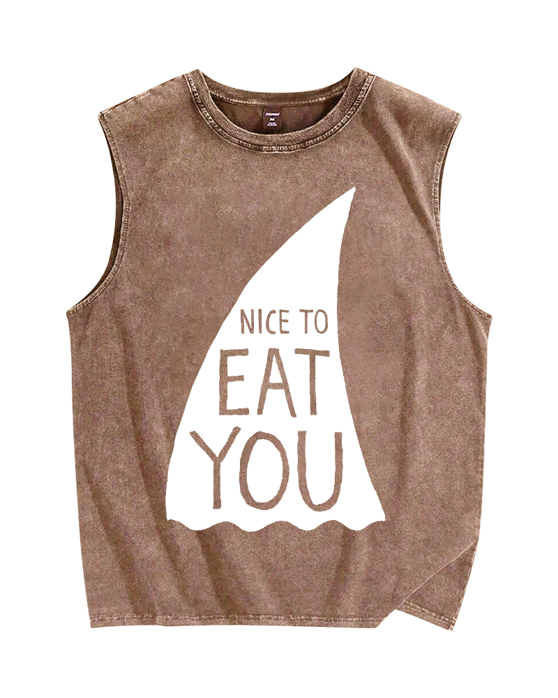Tokyo-Assassin Nice To Eat You Shark Vintage Distressed Washed Tank Top
