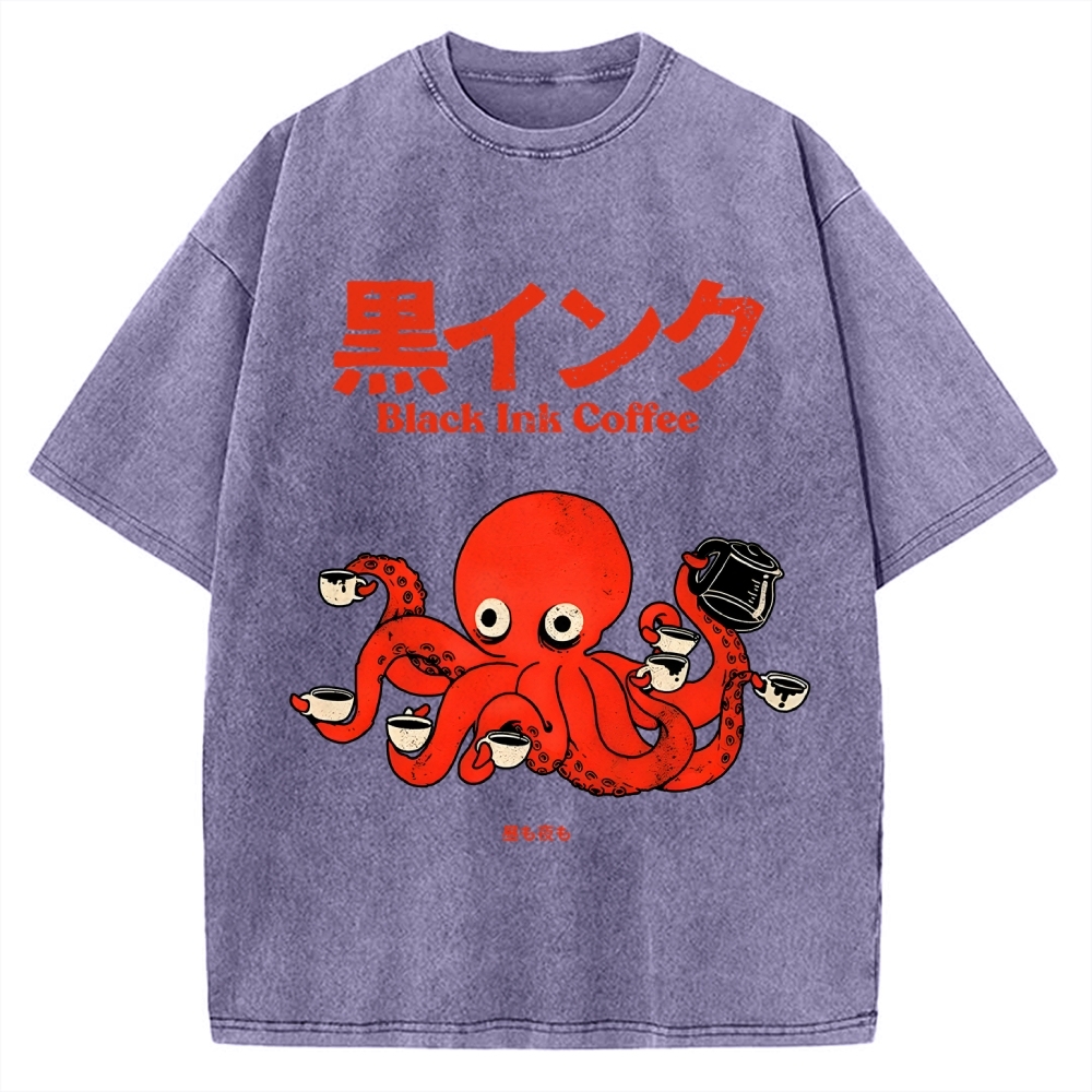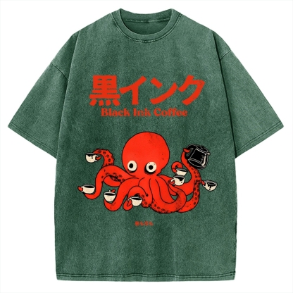 Tokyo-Assassin Octopus Ink Coffee Vintage Washed T-shirt