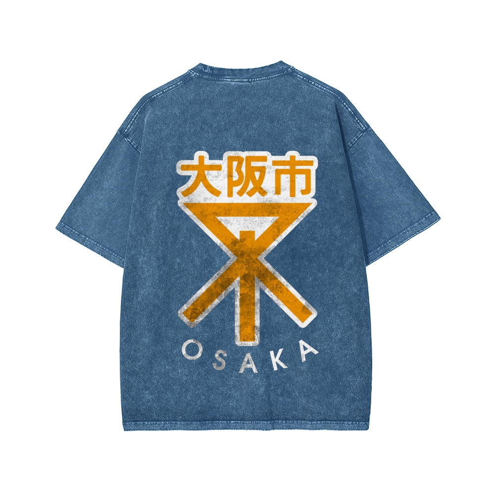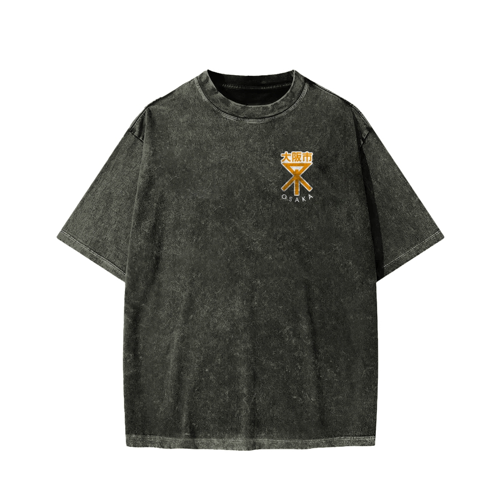 Tokyo-Assassin Osaka City Front Emblem And Back Printing Washed T-shirt
