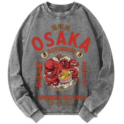 Tokyo-Assassin Osaka Drunken Octopus Eating Ramen Vintage Washed Sweatshirts