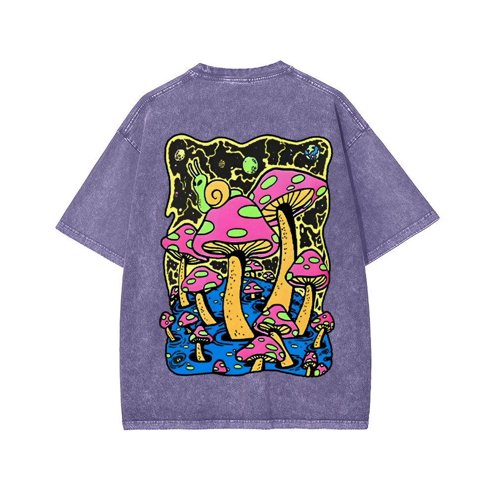 Tokyo-Assassin Psychedelic mushroom Front And Back Printing Washed T-shirt