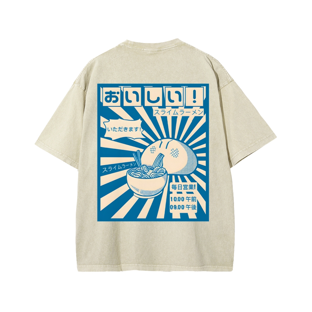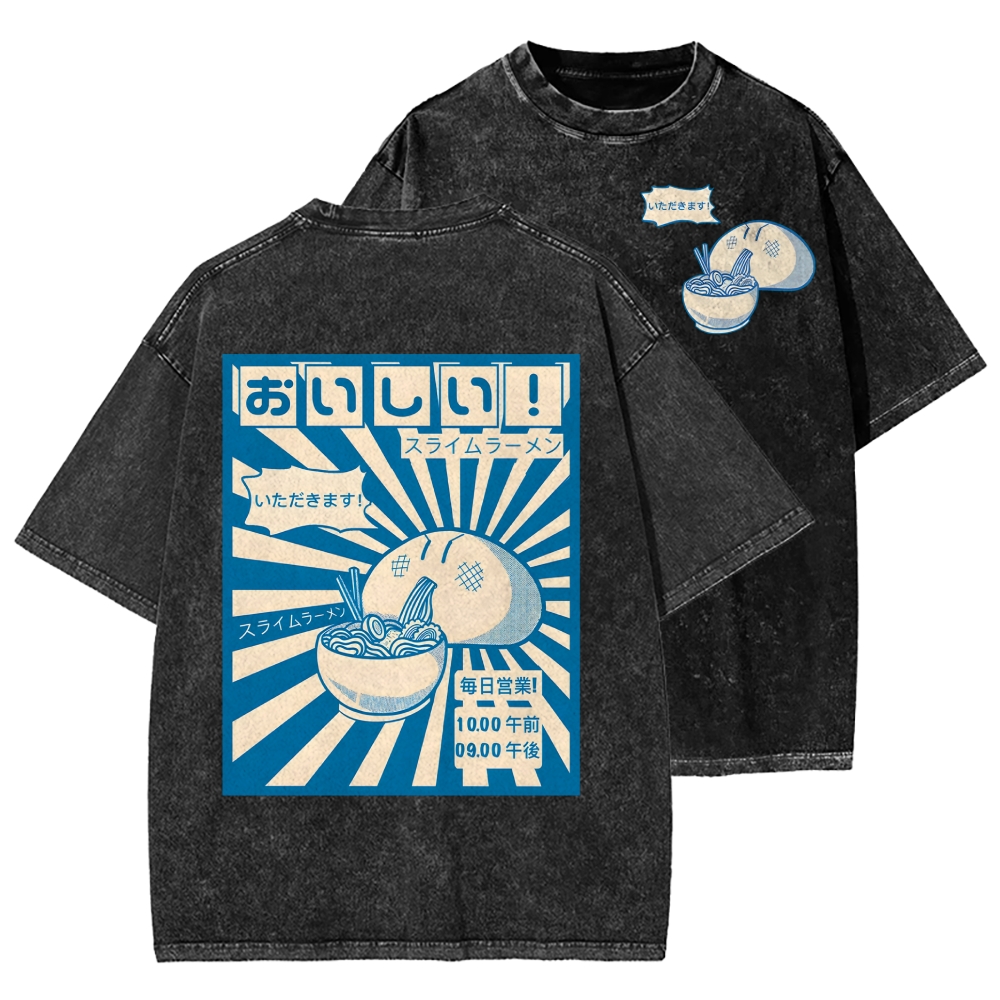 Tokyo-Assassin Ramen Gobbler Back Front And Back Printing Washed T-shirt