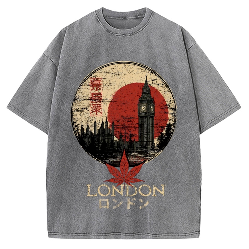 Tokyo-Assassin Red leaves London Japanese style painting Ukiyo-e Vintage Washed T-shirt