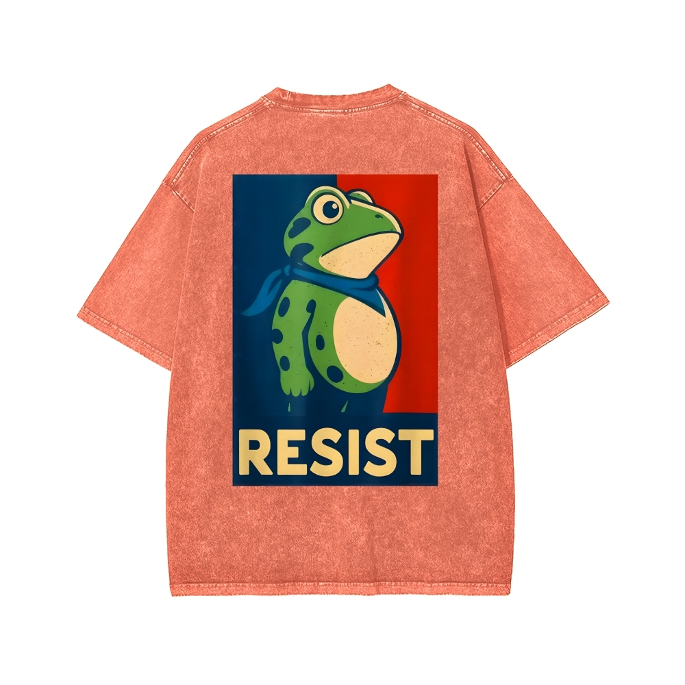 Tokyo-Assassin Resist Frog Front And Back Printing Washed T-shirt