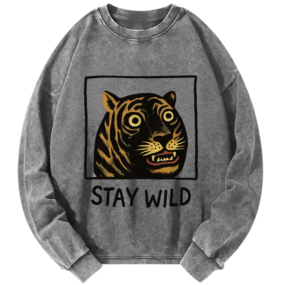 Tokyo-Assassin Silly And Cute Tiger Vintage Washed Sweatshirts