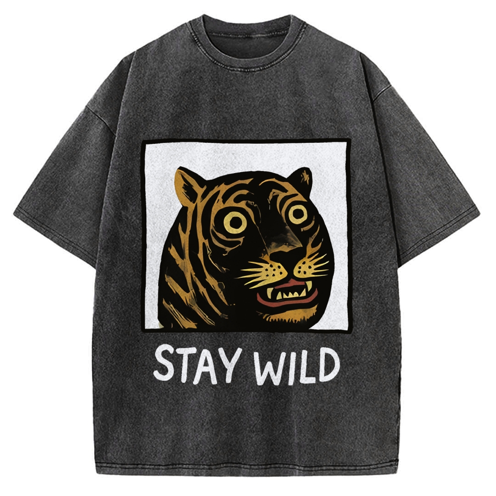 Tokyo-Assassin Silly And Cute Tiger Vintage Washed T-shirt