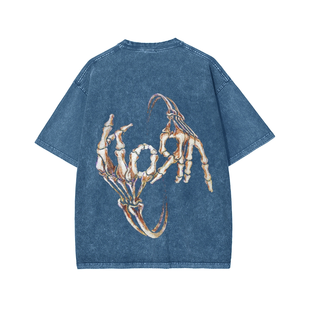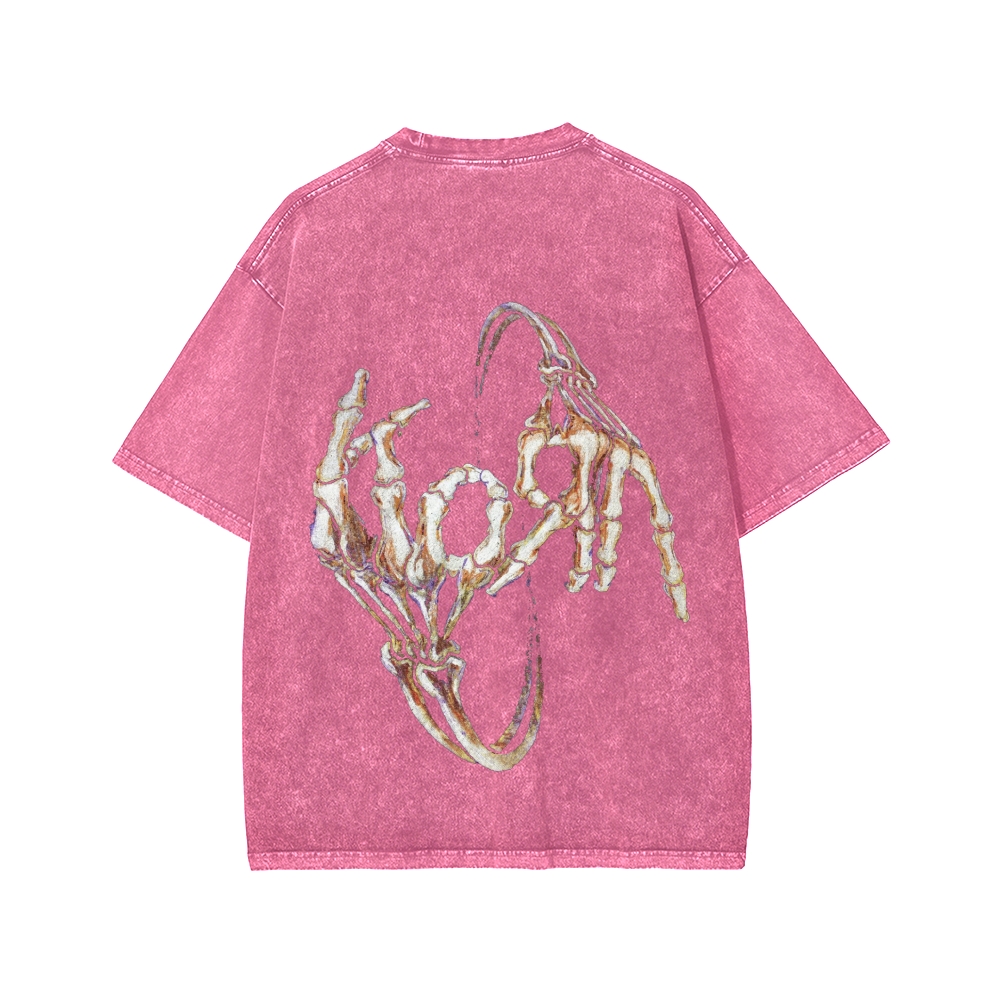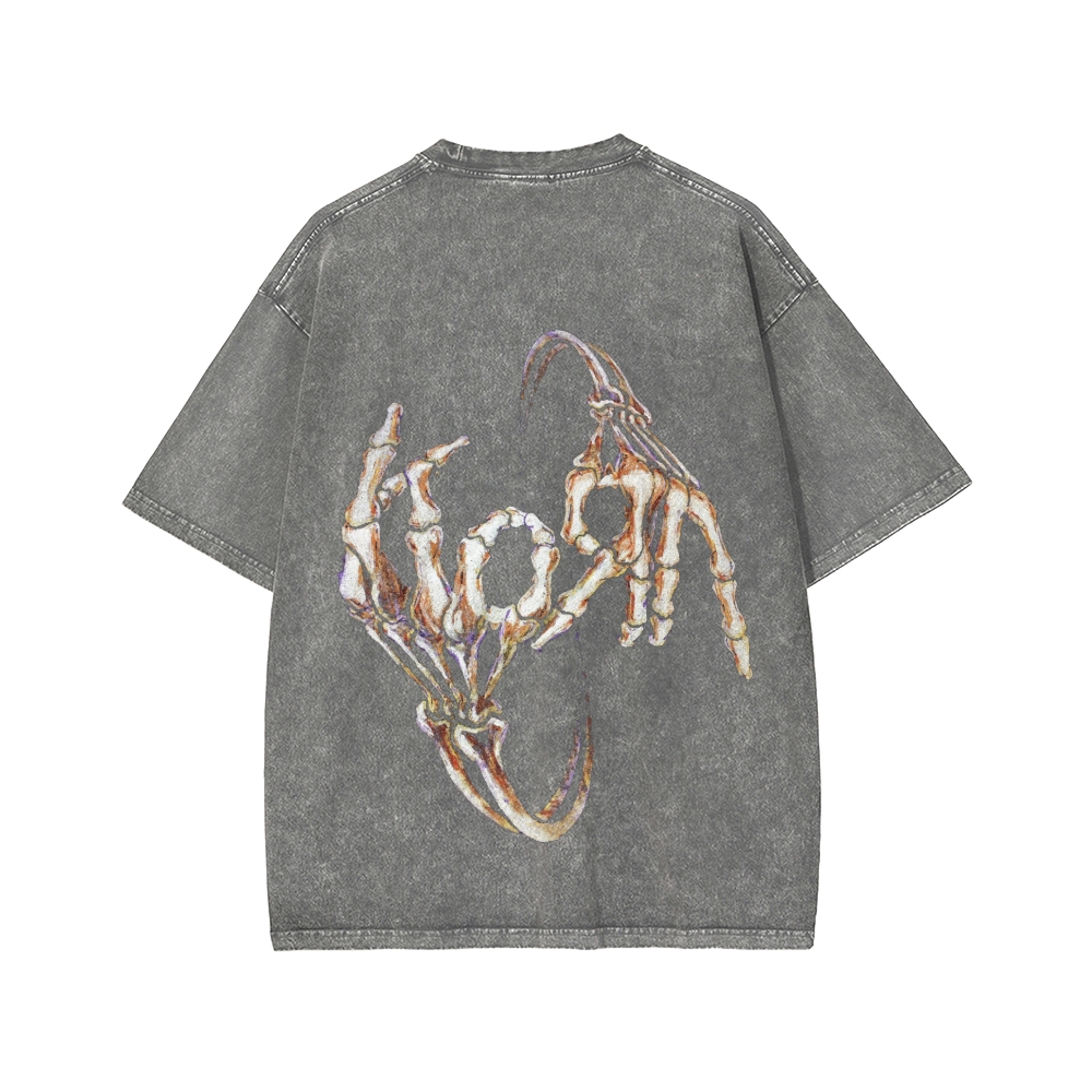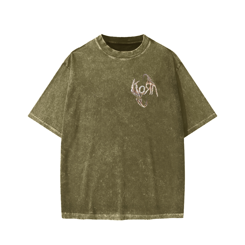 Tokyo-Assassin Skeleton Fingers KORN Front And Back Printing Washed T-shirt