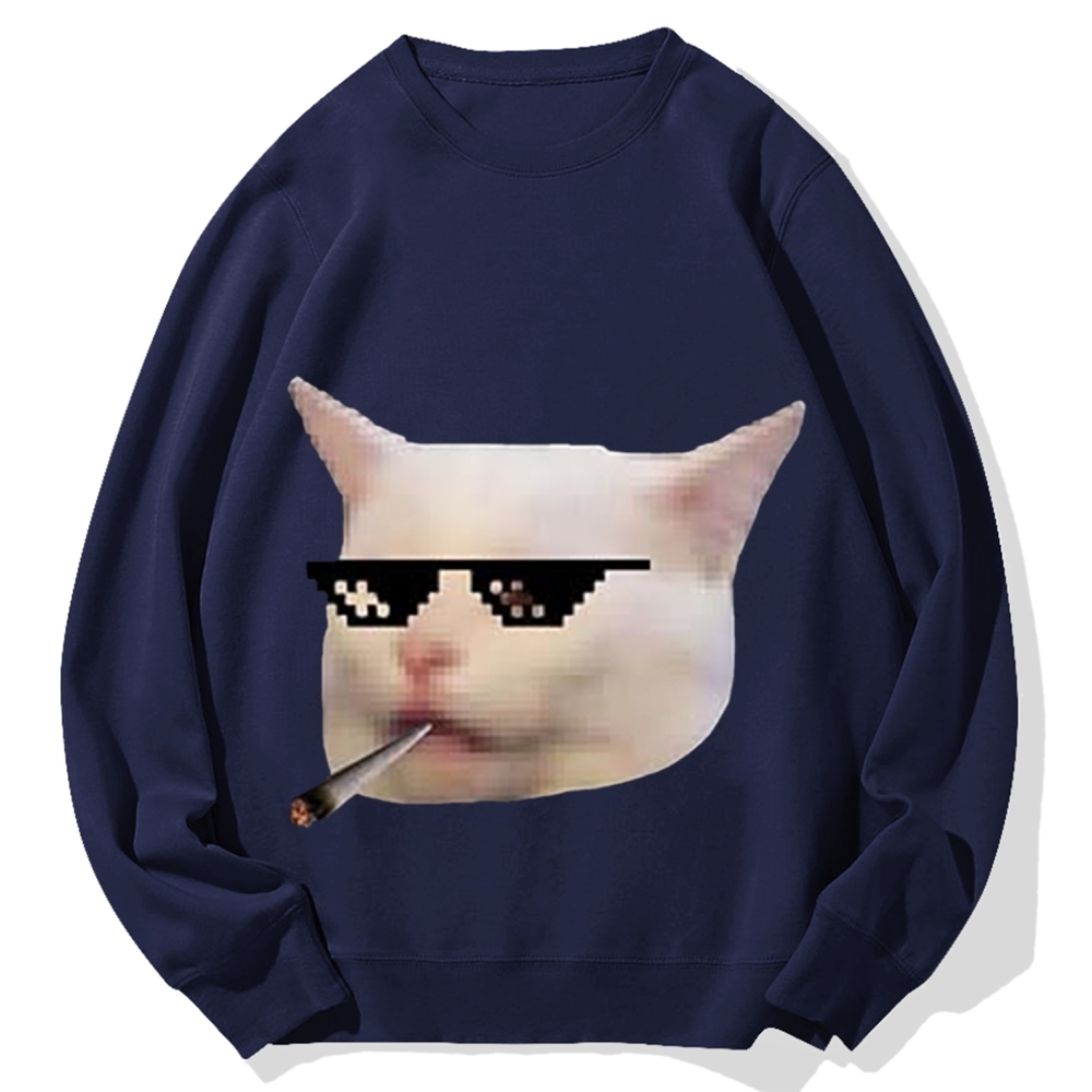 Tokyo-Assassin Smoking Meme Cat Cotton Sweatshirt