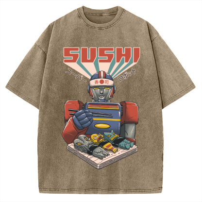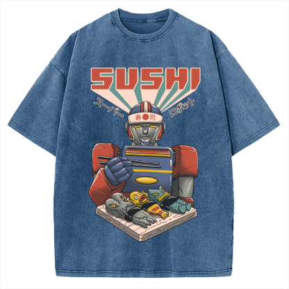 Tokyo-Assassin Super Sushi Robot Vintage Washed T-shirt