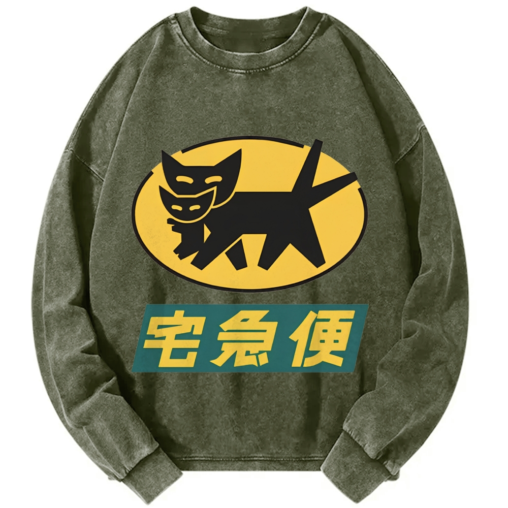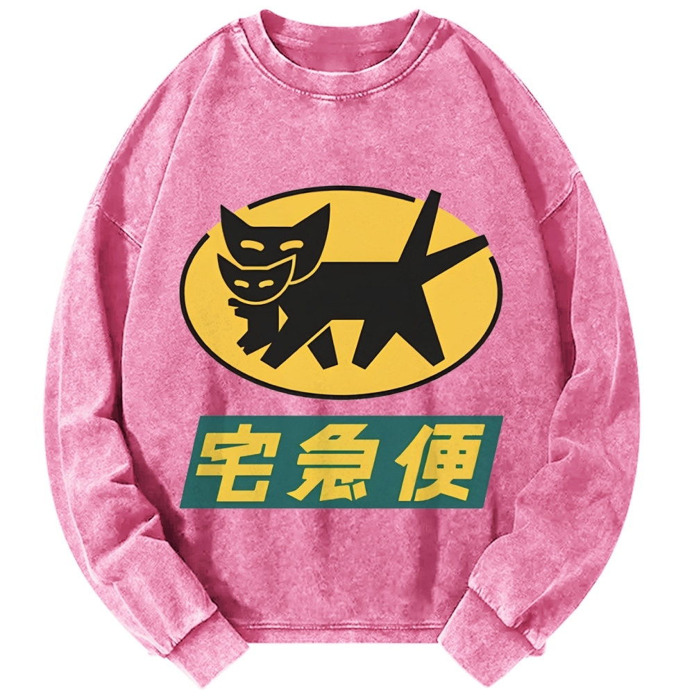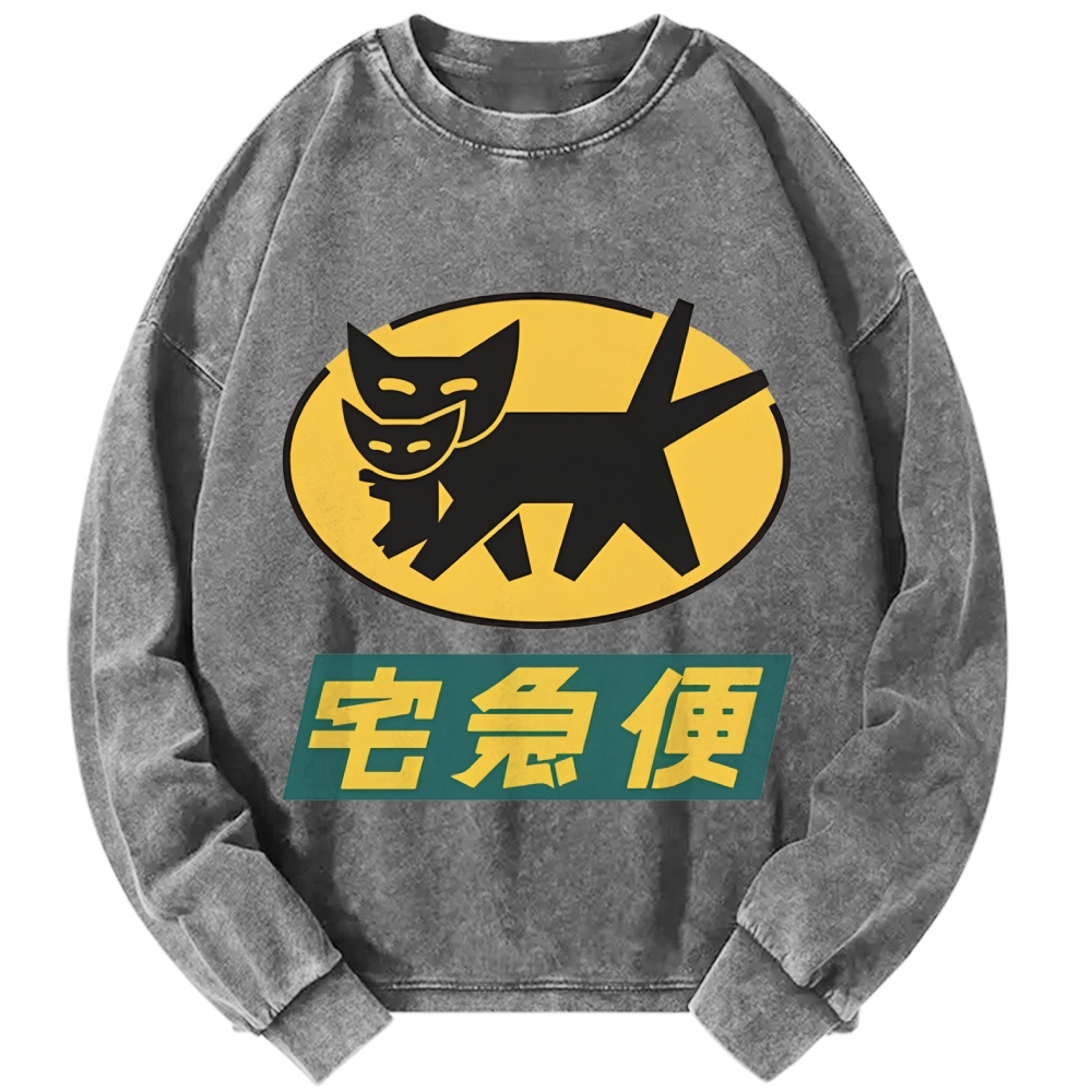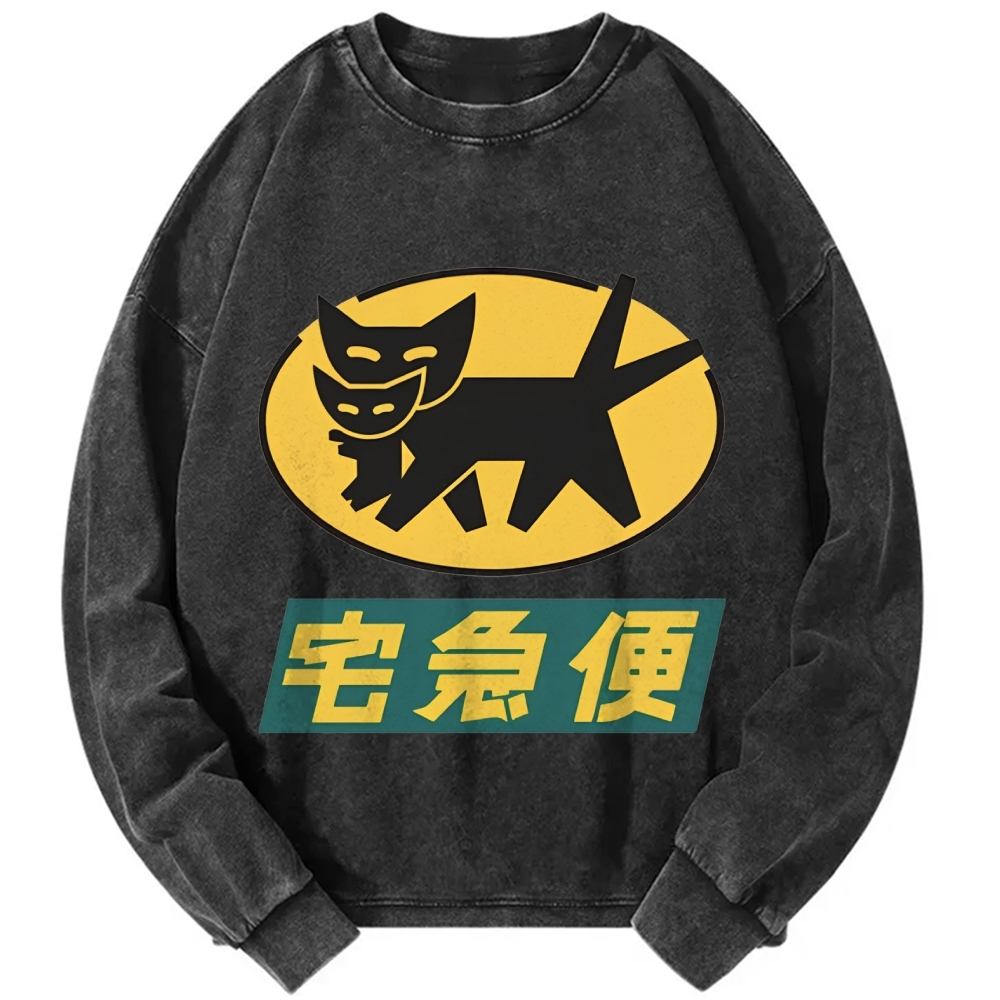Tokyo-Assassin Ta-Q-Bin Yamato Transport Black Cat Vintage Washed Sweatshirts