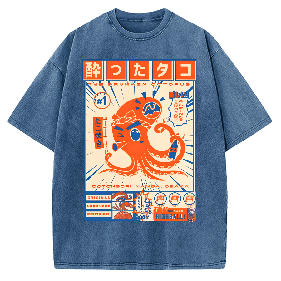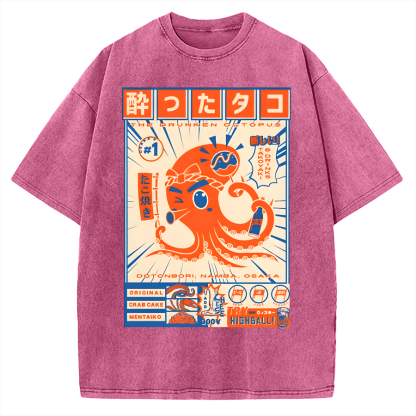 Tokyo-Assassin The Drunken Octopus Vintage Washed T-shirt