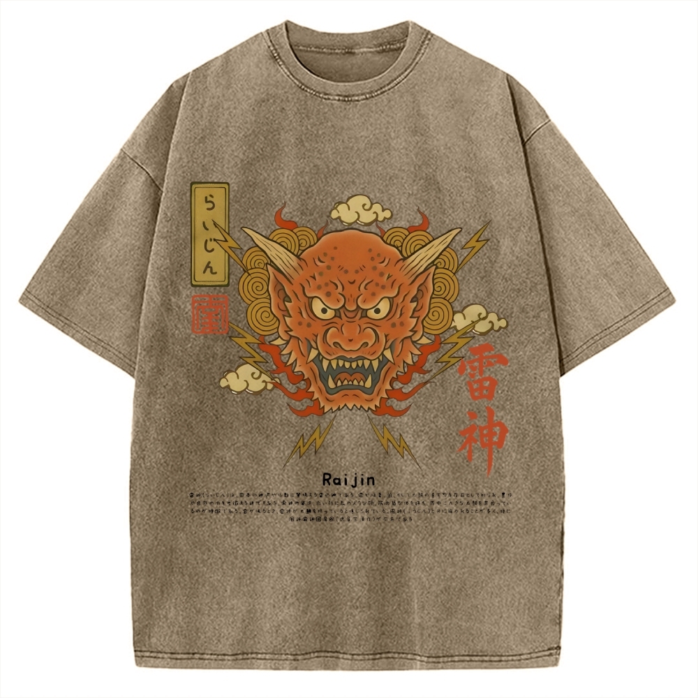 Tokyo-Assassin Thunder God Raijin Yokai Ukiyo-E Japanese Vintage Washed T-shirt