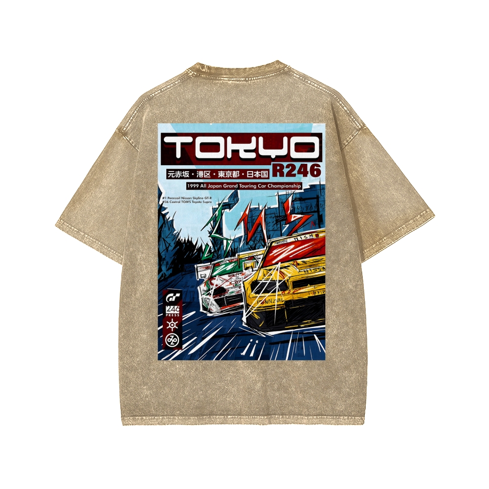 Tokyo-Assassin Tokyo r246 Gran Turismo 4 a3 Front And Back Printing Washed T-shirt