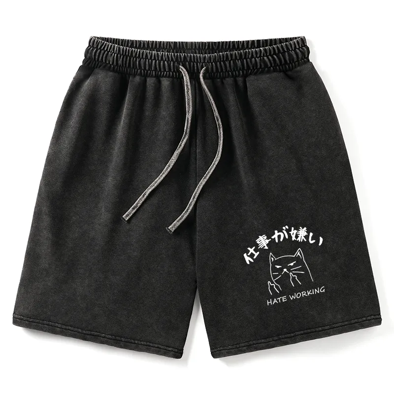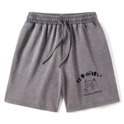 Tokyo-Assassin A Cat That Hates Work Washed Shorts