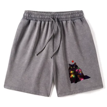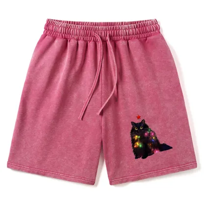 Tokyo-Assassin Christmas Lights Cat Washed Shorts
