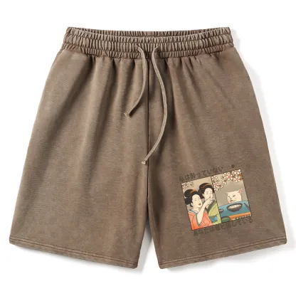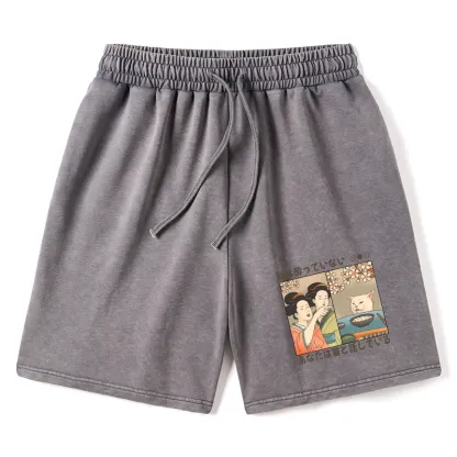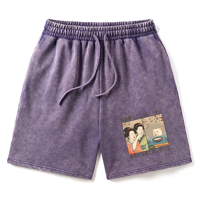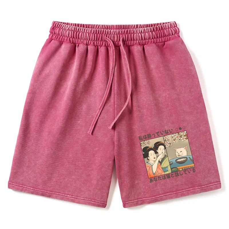 Tokyo-Assassin Japanese Woman Shouting at a Cat Washed Shorts
