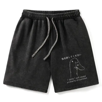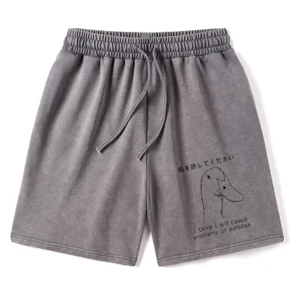 Tokyo-Assassin Stupid Goose Funny Washed Shorts