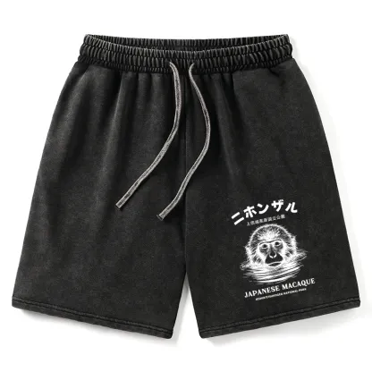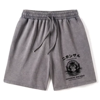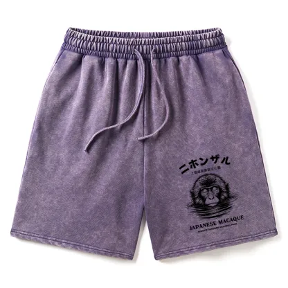 Tokyo-Assassin The Macaque Monkey In The Bath Japanese Washed Shorts
