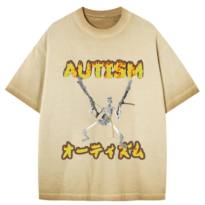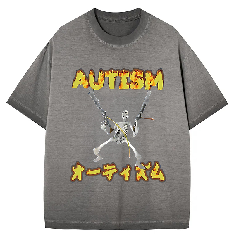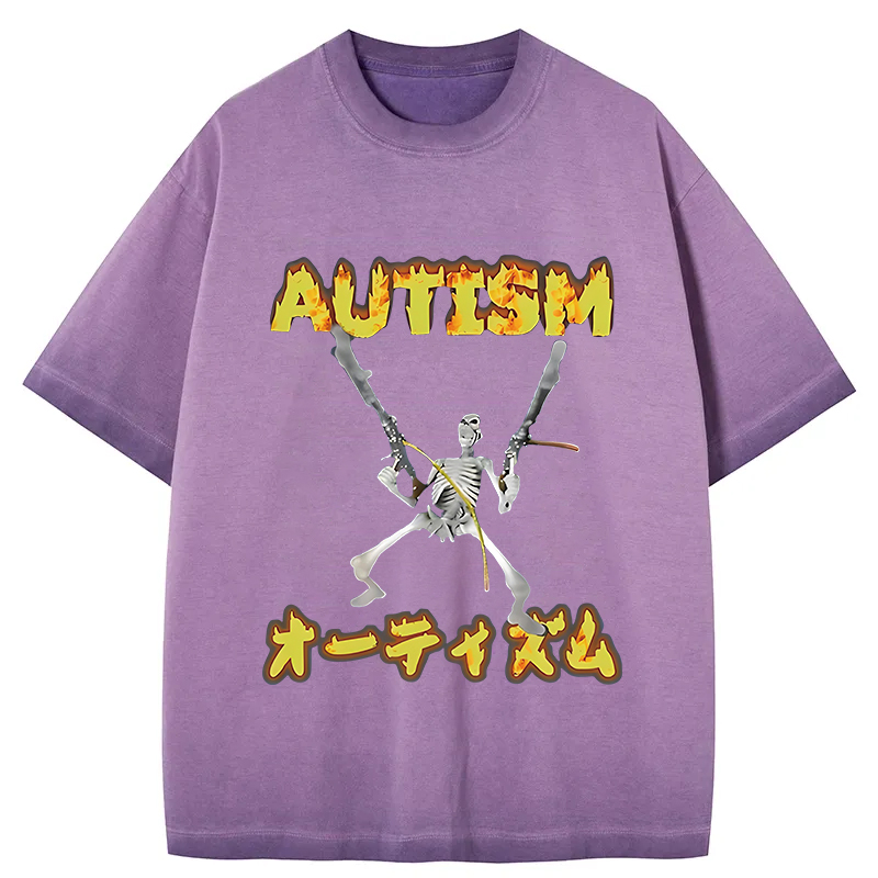 Tokyo-Assassin Autism Funny Skeleton Gradient Washed T-Shirt
