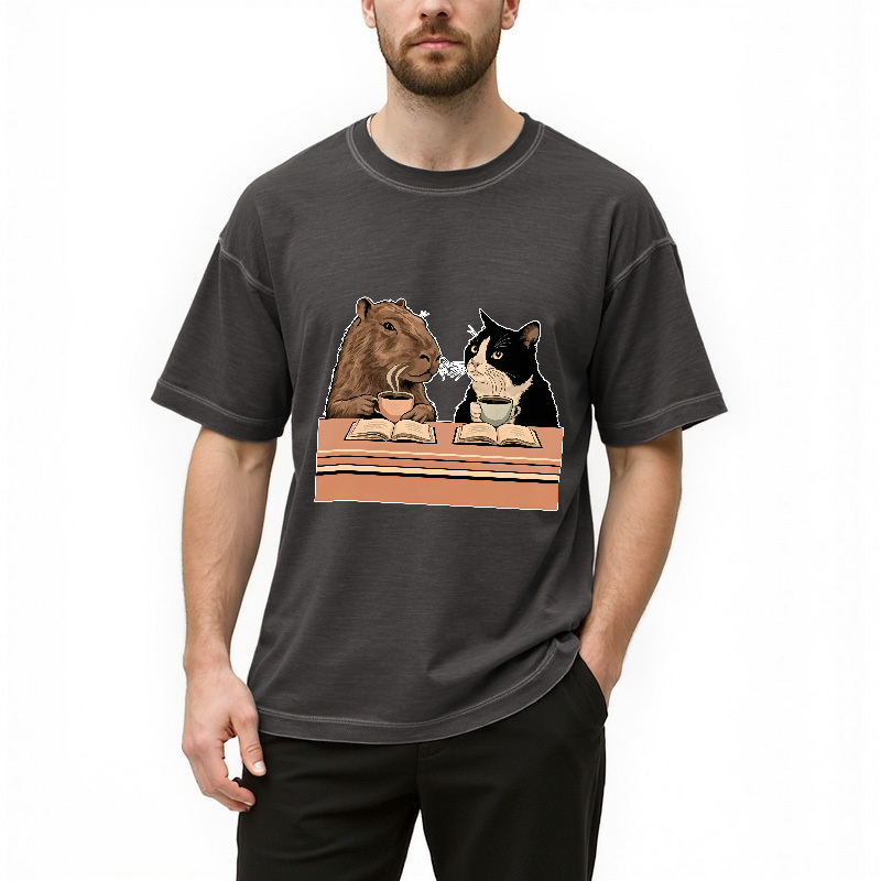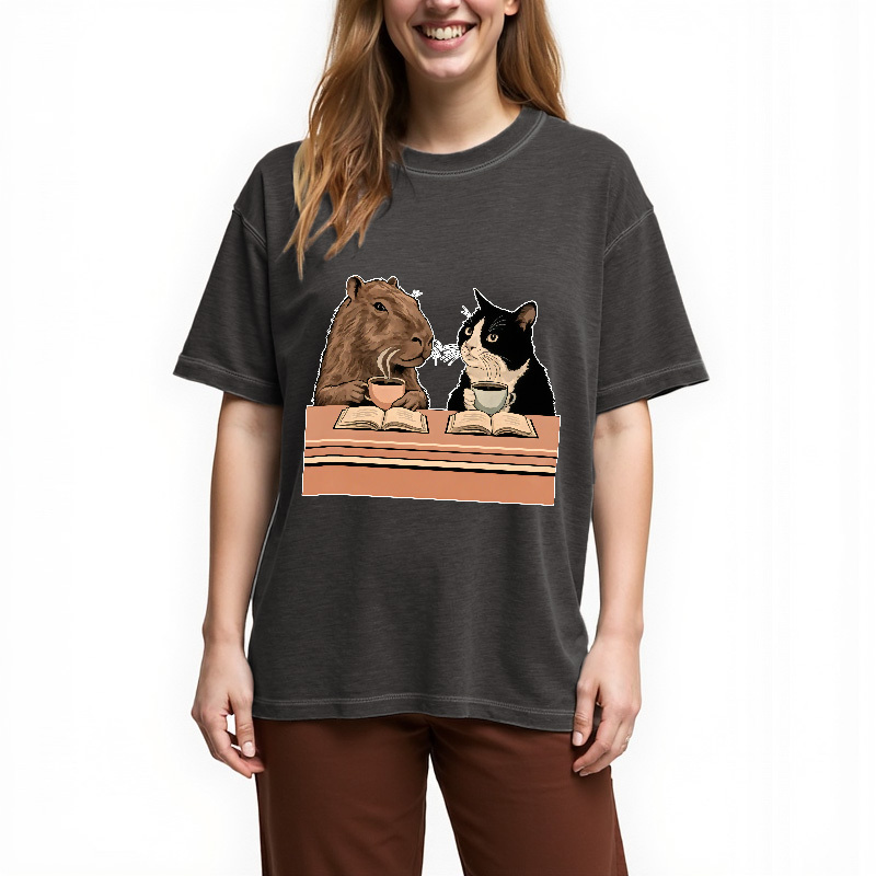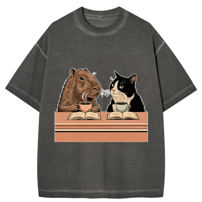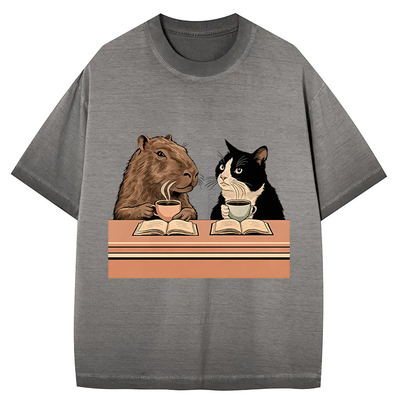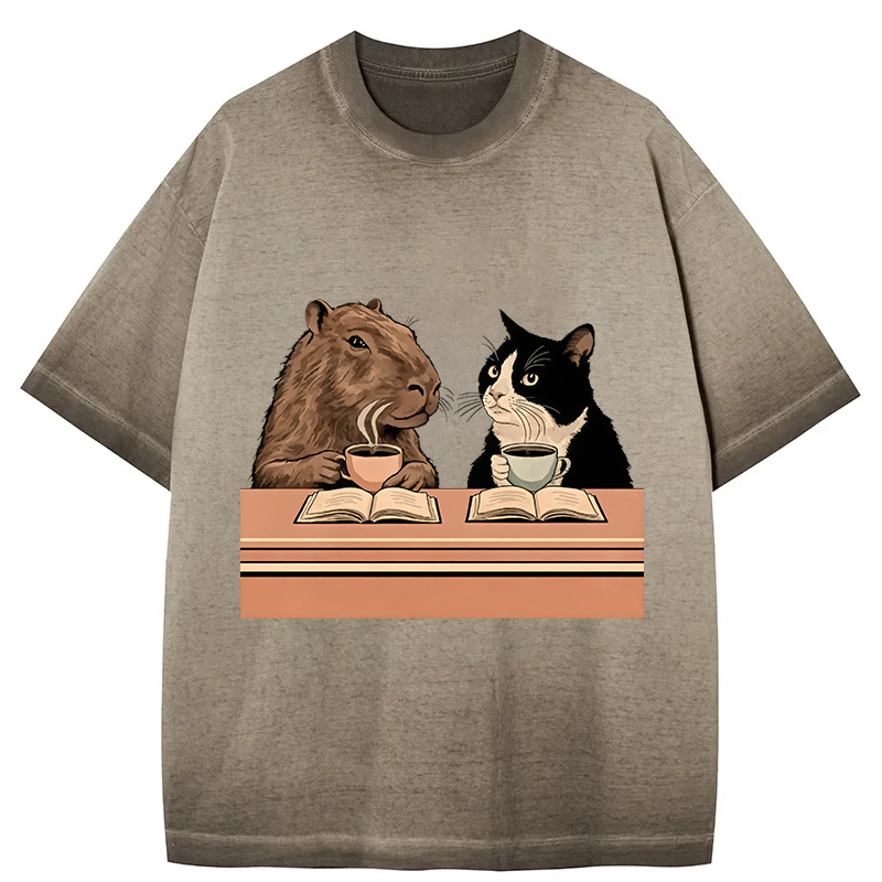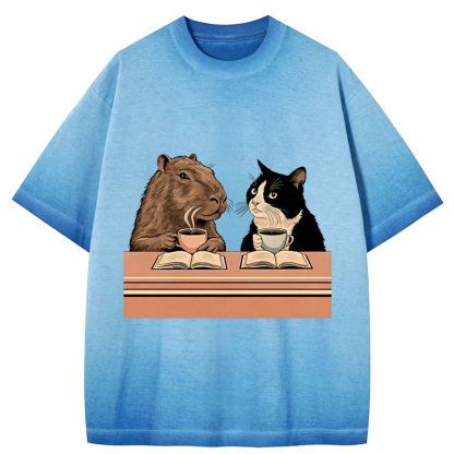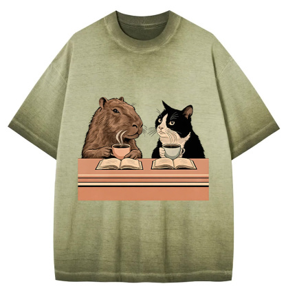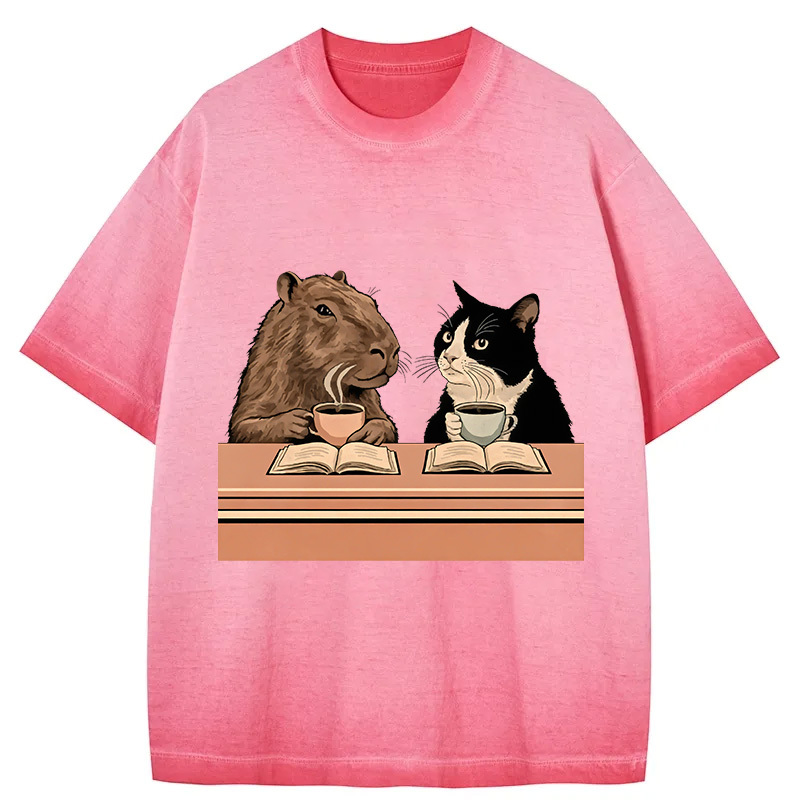 Tokyo-Assassin Capybara And Cat Talk Gradient Washed T-Shirt