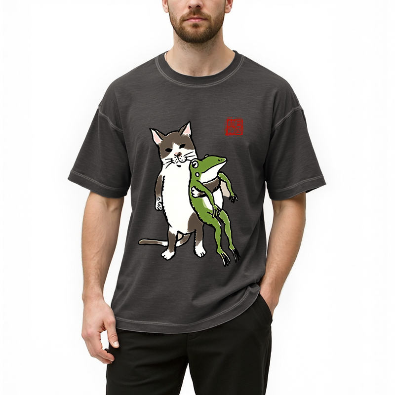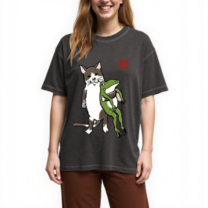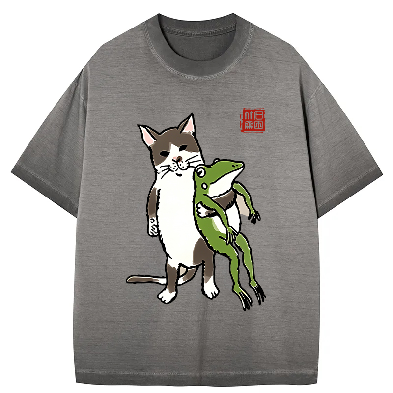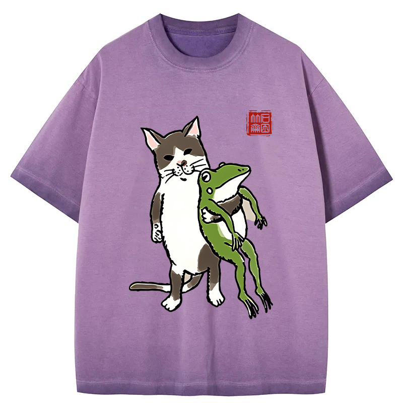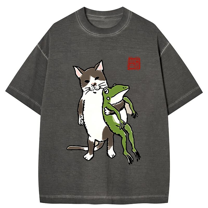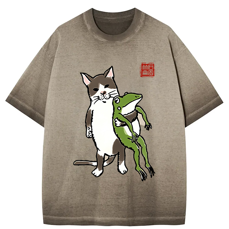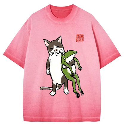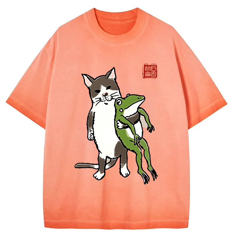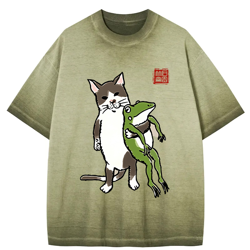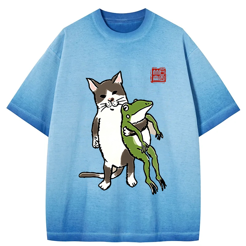 Tokyo-Assassin Cat Holding A Frog Gradient Washed T-Shirt