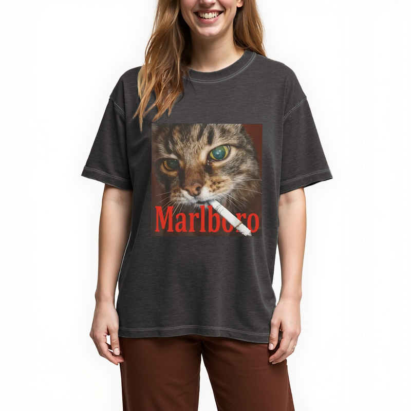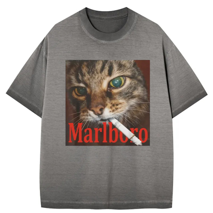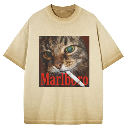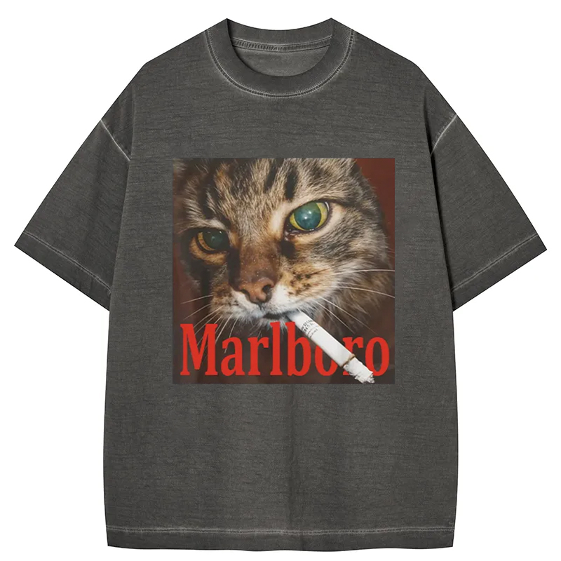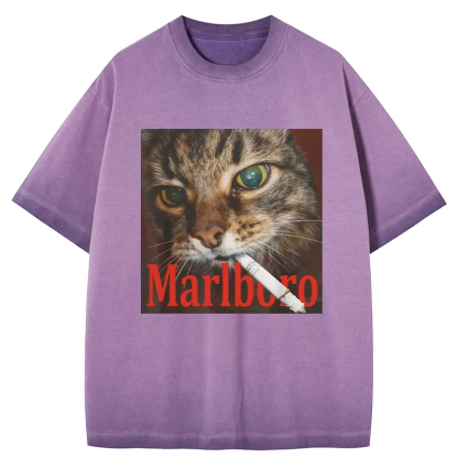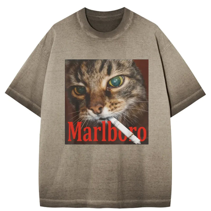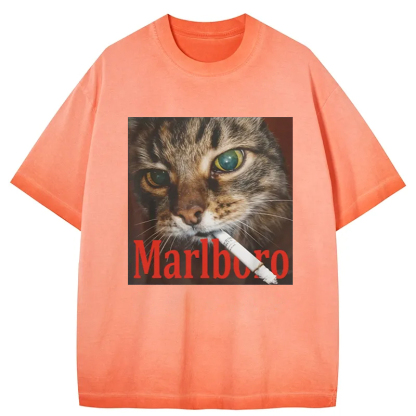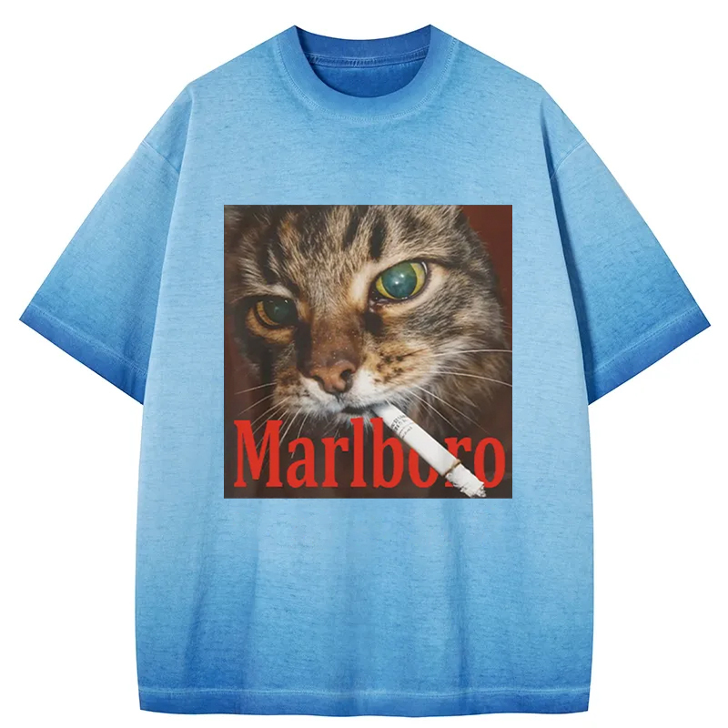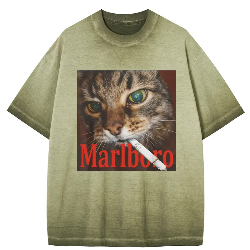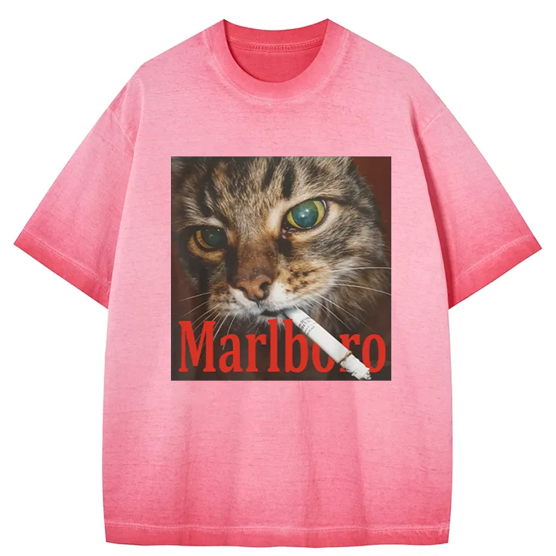 Tokyo-Assassin Funny Smoking Cat Meme Gradient Washed T-Shirt