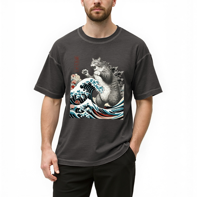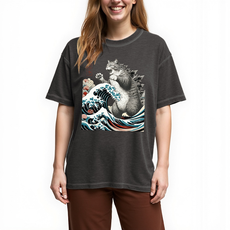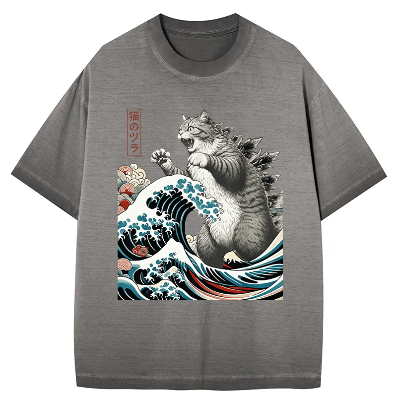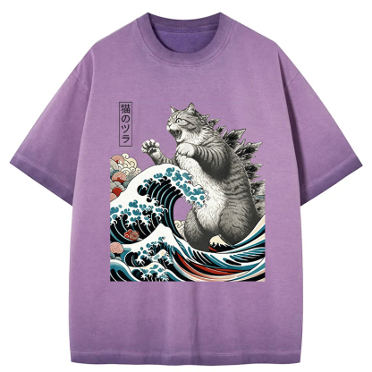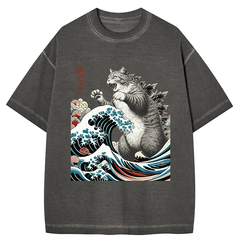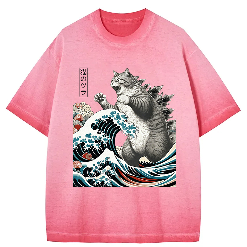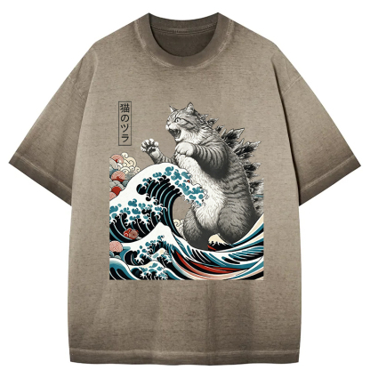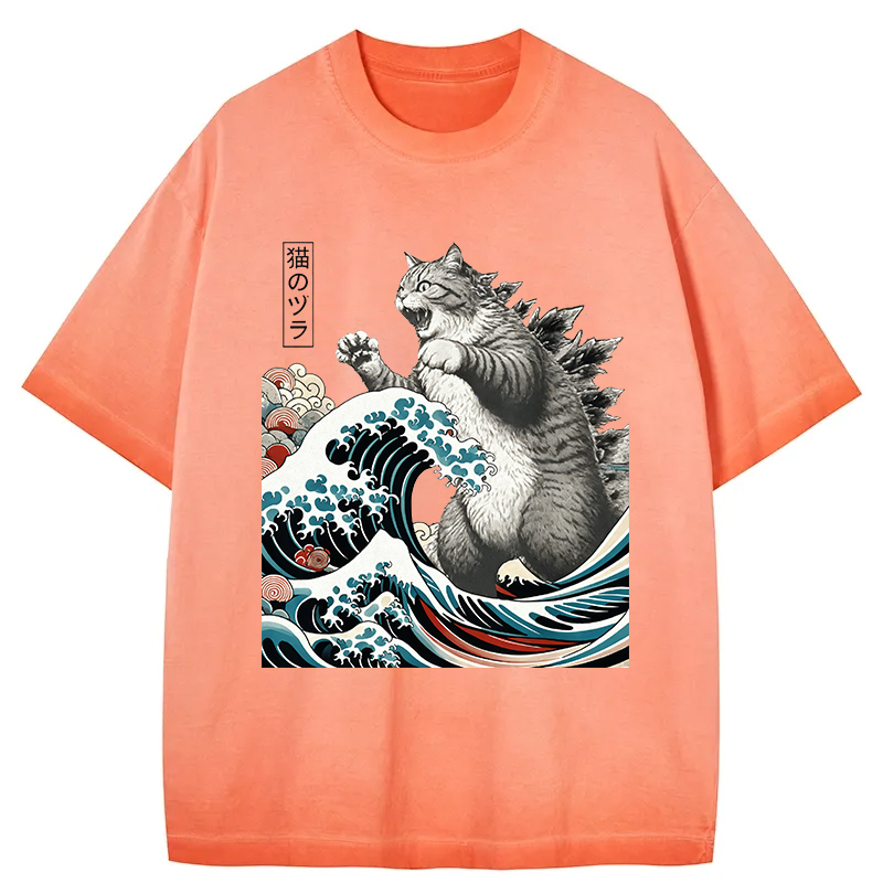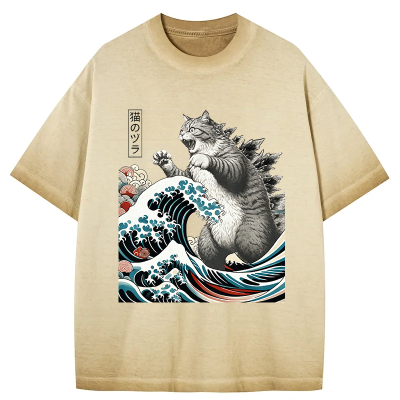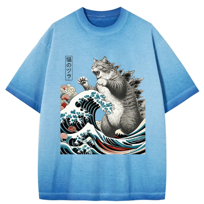 Tokyo-Assassin Monster Ukiyoe Great Wave Vintage Japanese Design Gradient Washed T-Shirt