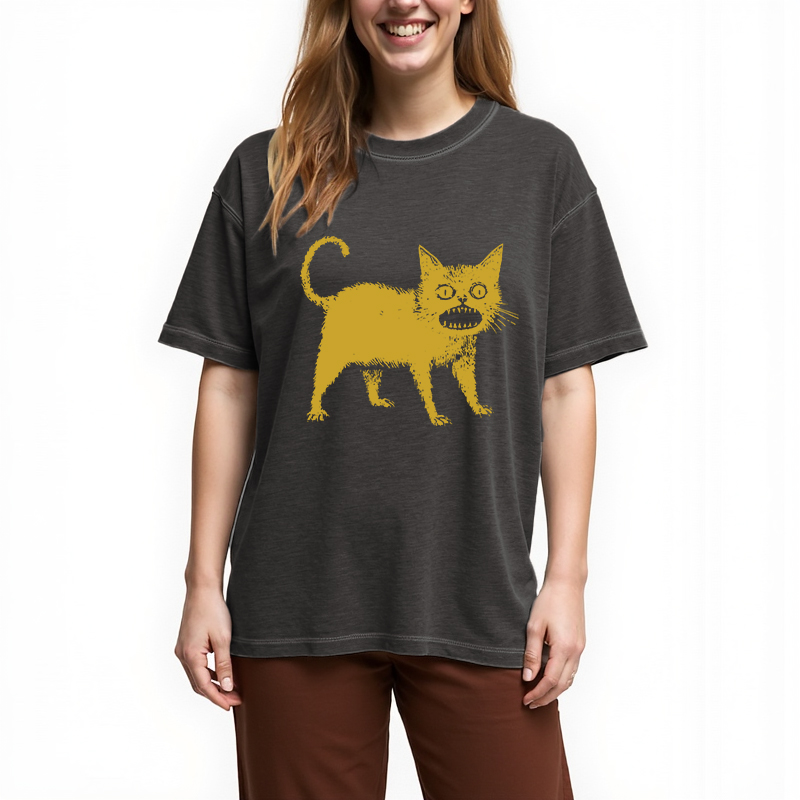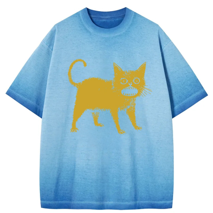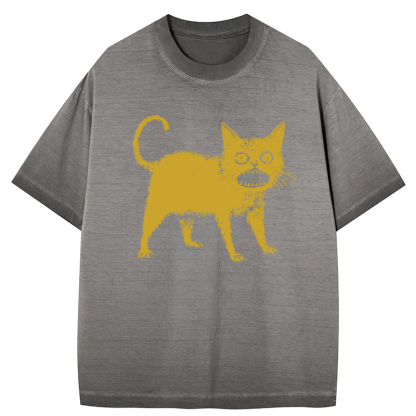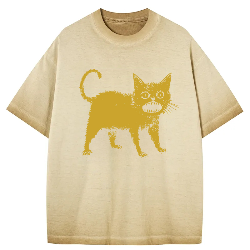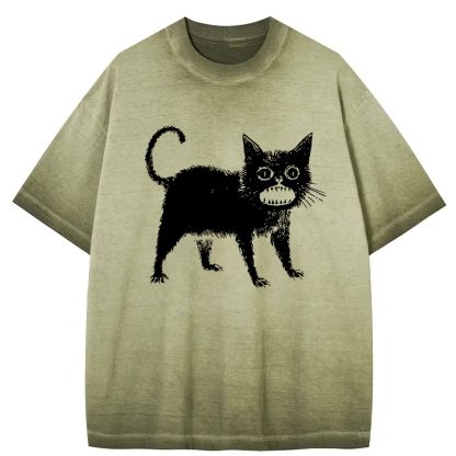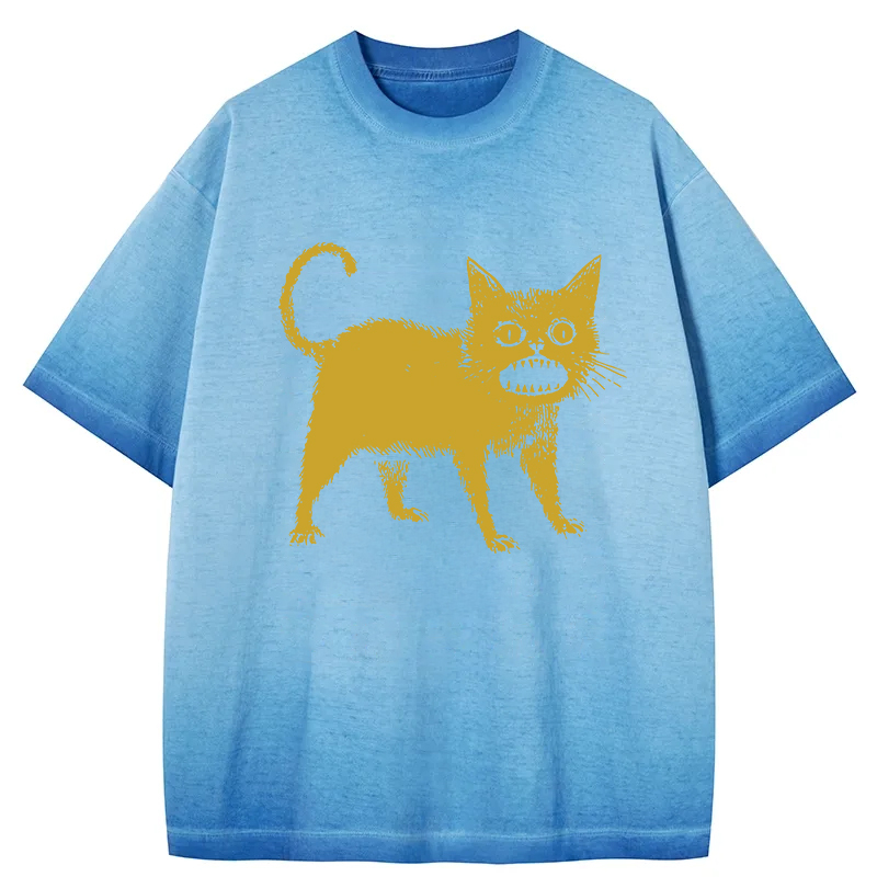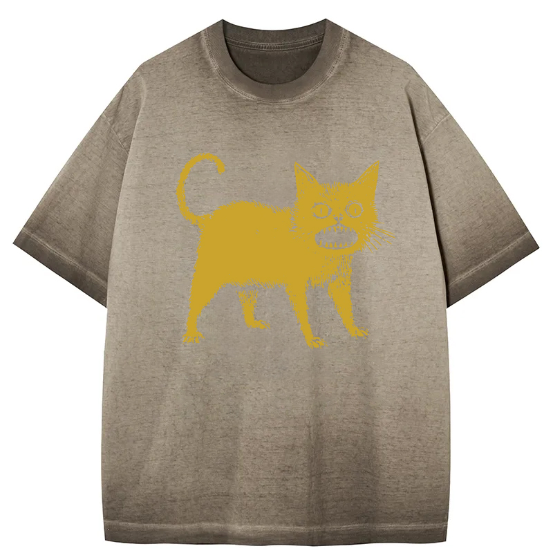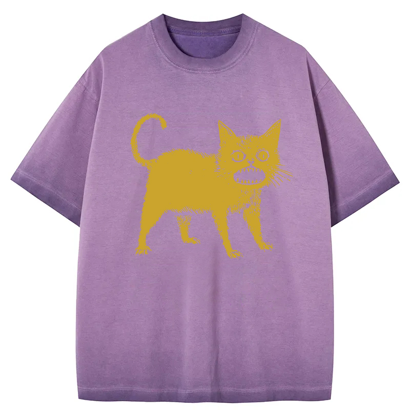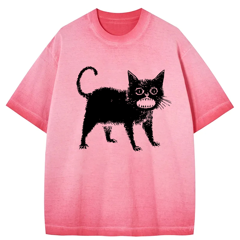 Tokyo-Assassin Horrible Japanese Cat Gradient Washed T-Shirt