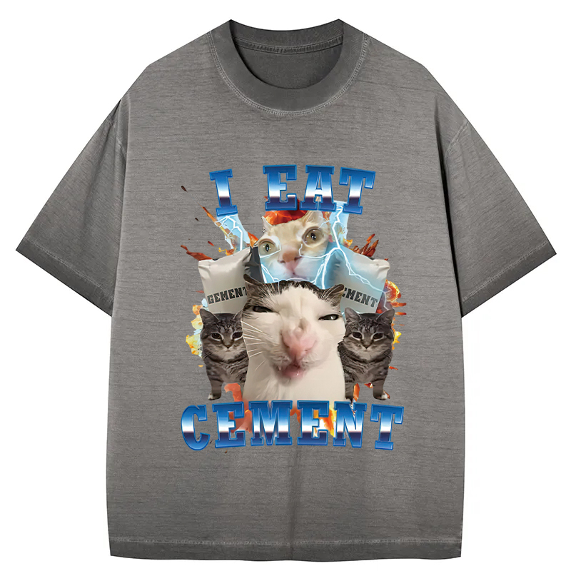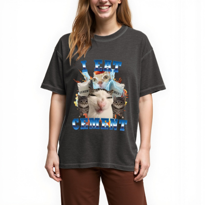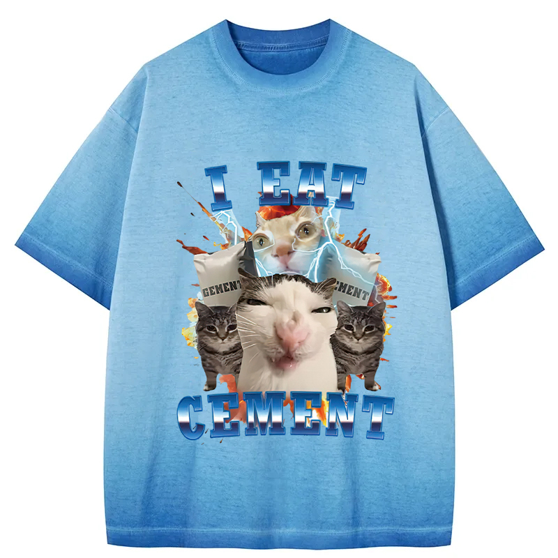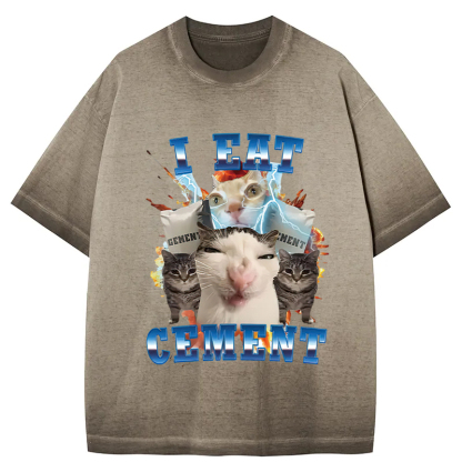 Tokyo-Assassin I Eat Cement Funny Cat Meme Gradient Washed T-Shirt