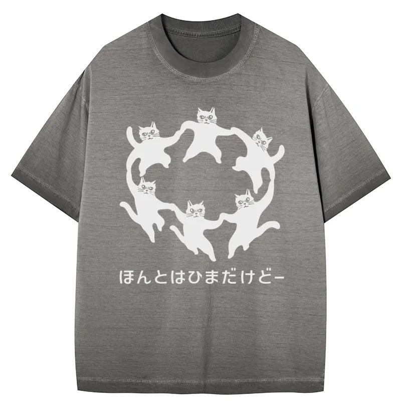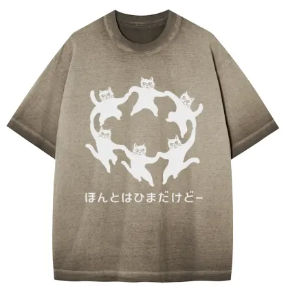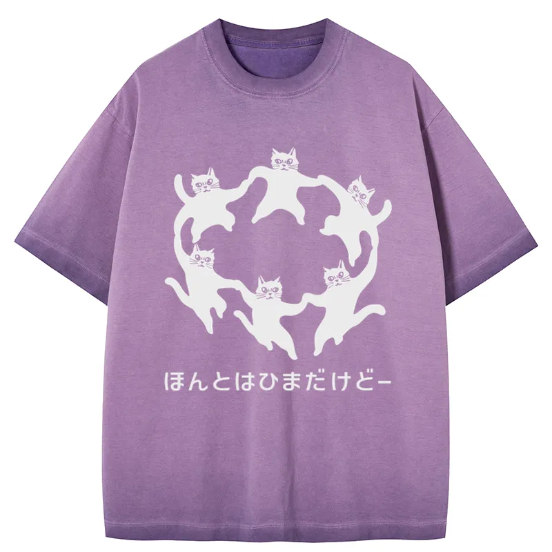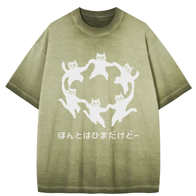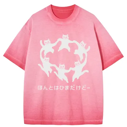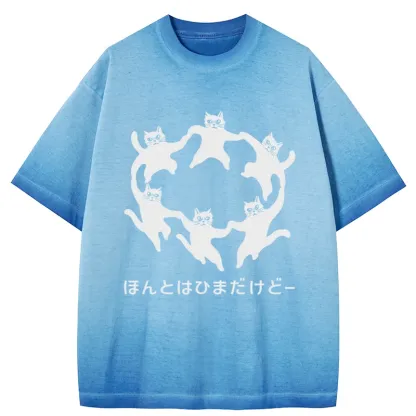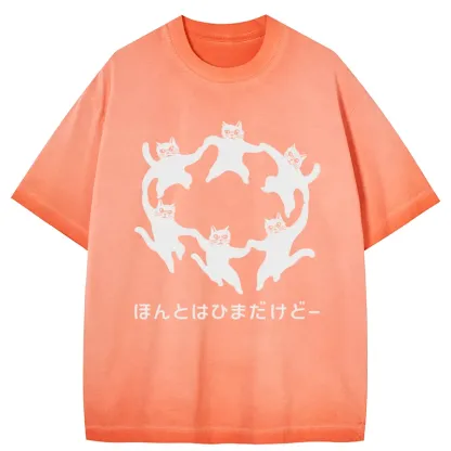 Tokyo-Assassin Leisure Cats Japanese Gradient Washed T-Shirt