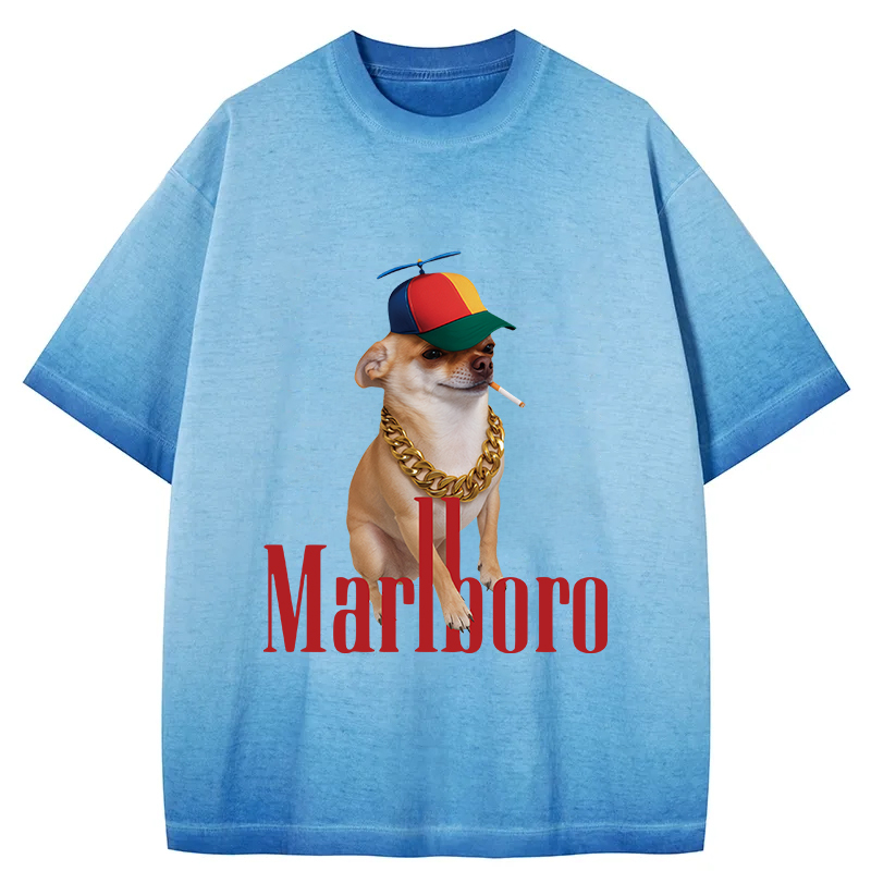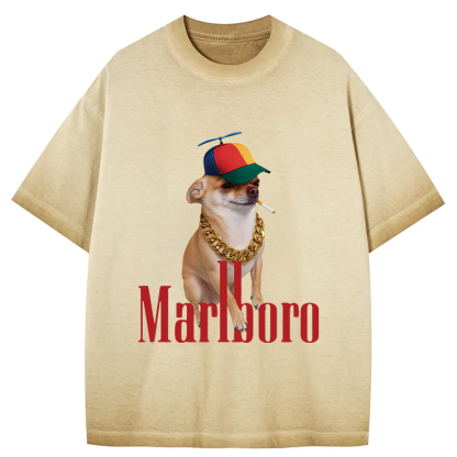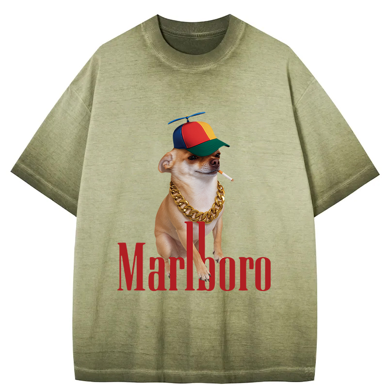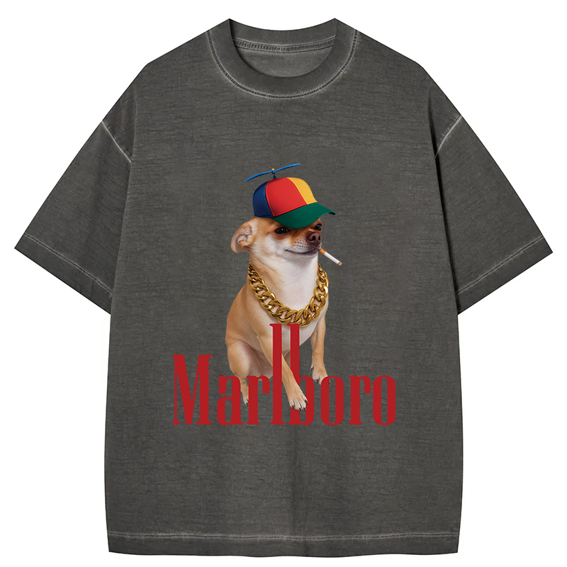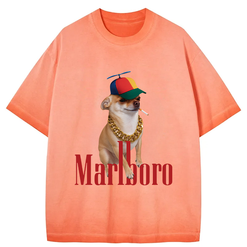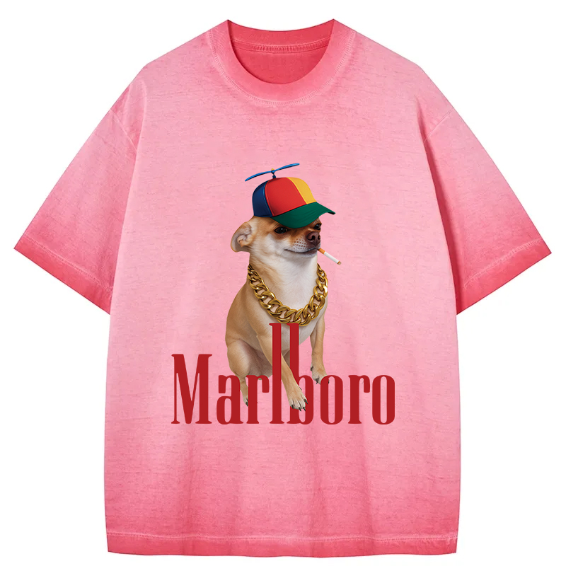 Tokyo-Assassin Marlboro Dog Smoking Meme Gradient Washed T-Shirt