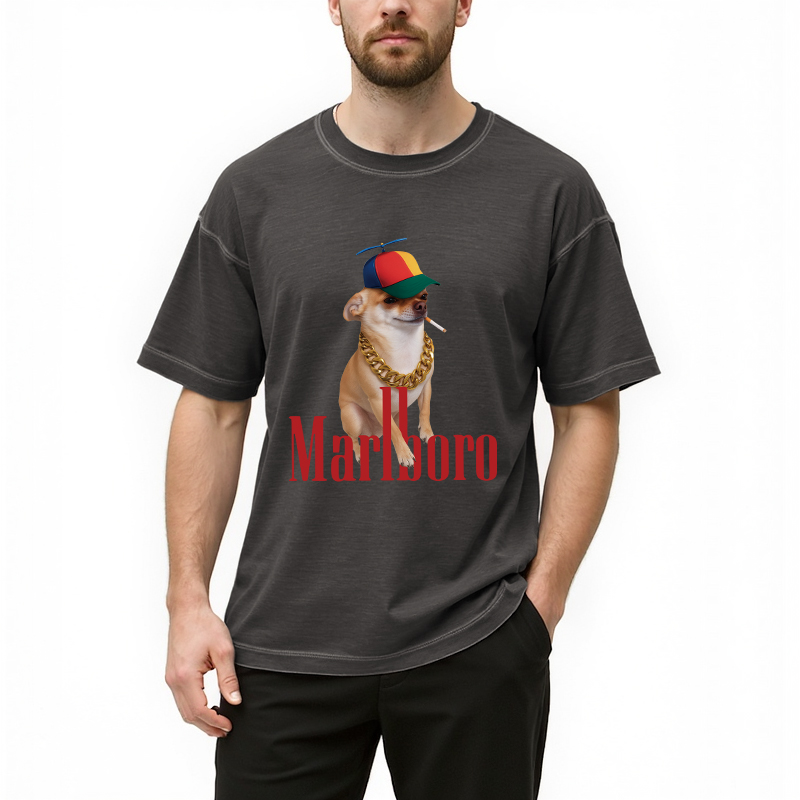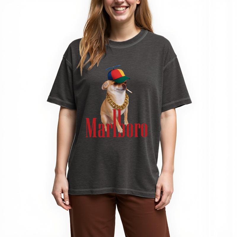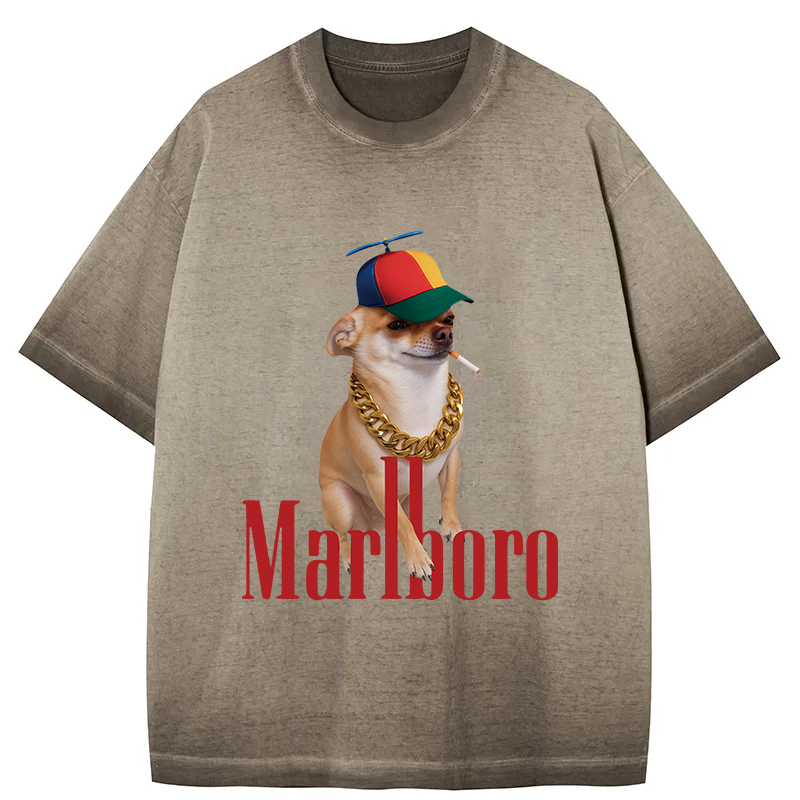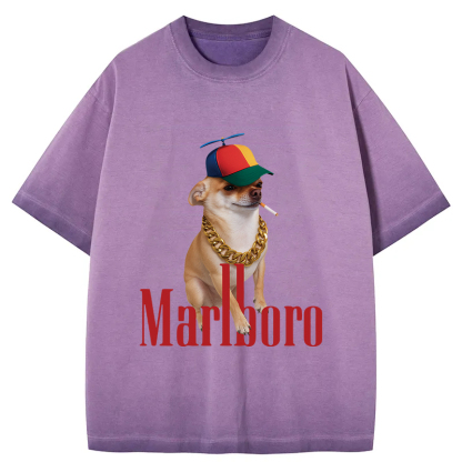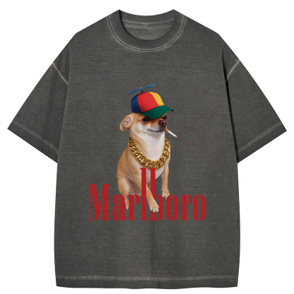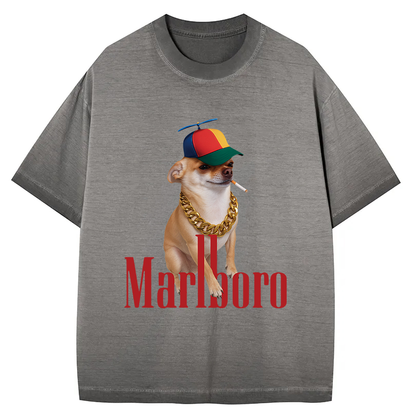 Tokyo-Assassin Marlboro Dog Smoking Meme Gradient Washed T-Shirt