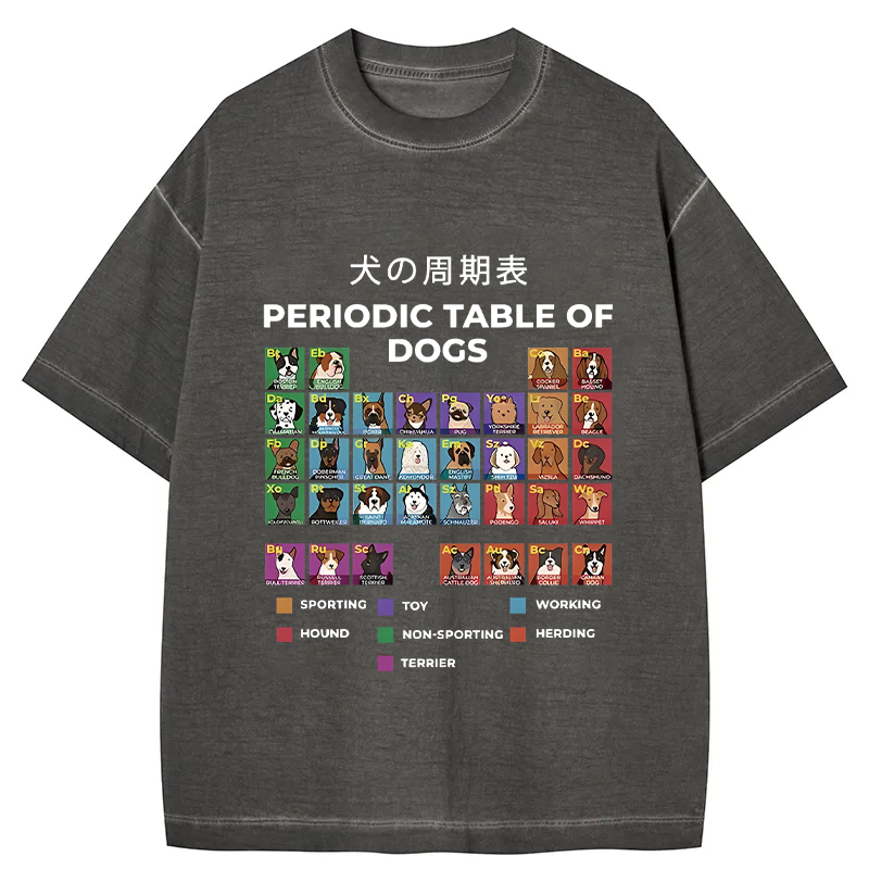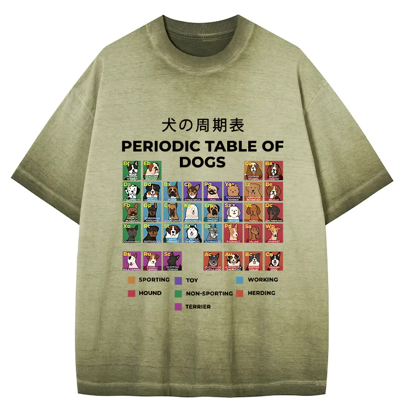 Tokyo-Assassin Periodic Table Of Dogs Gradient Washed T-Shirt