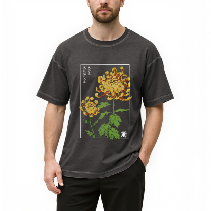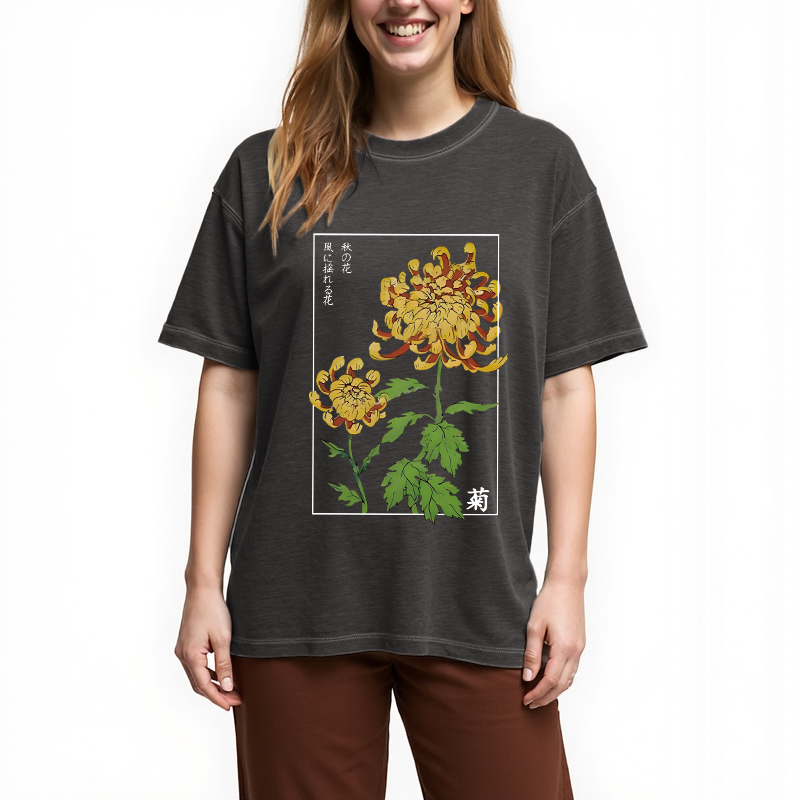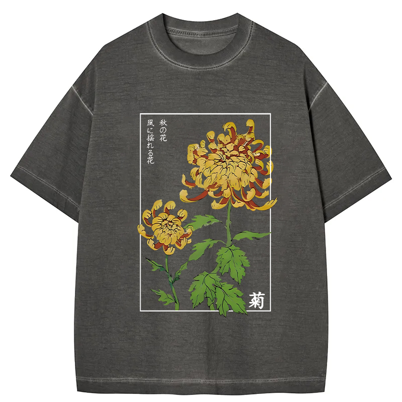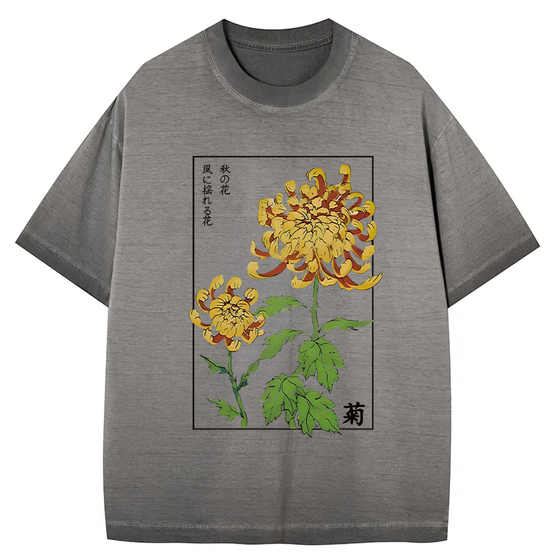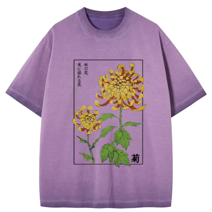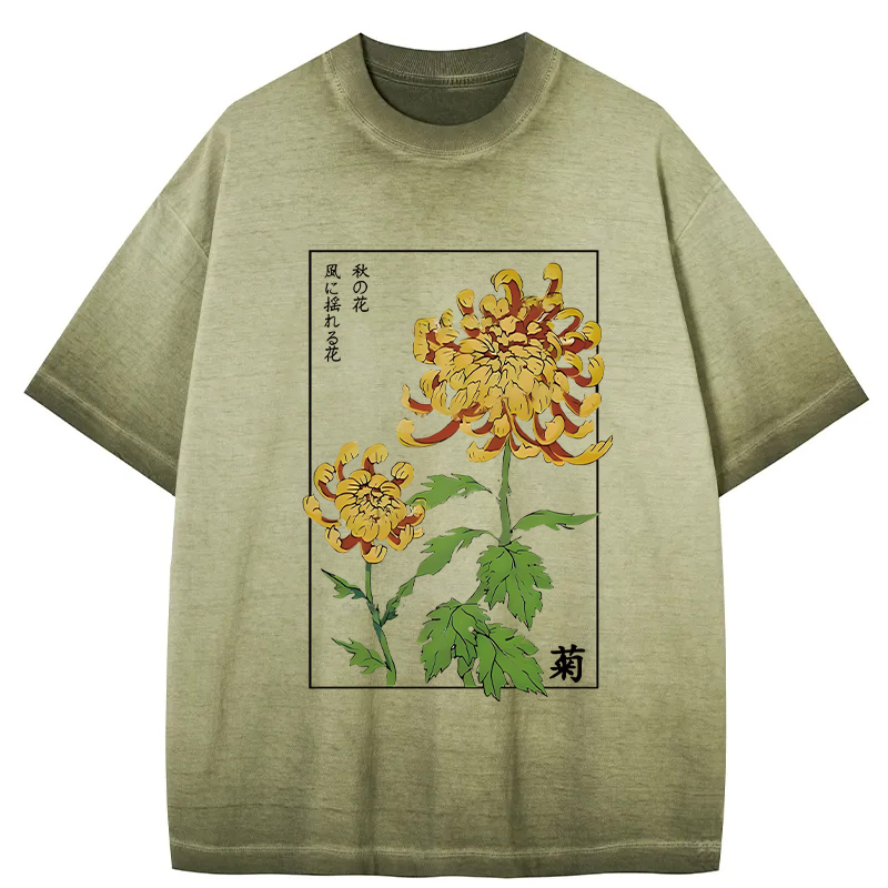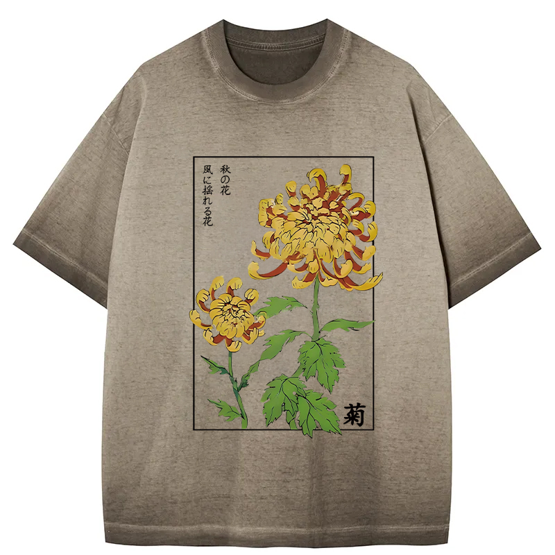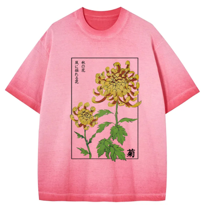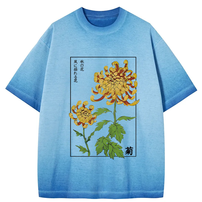 Tokyo-Assassin Retro Chrysanthemum Gradient Washed T-Shirt