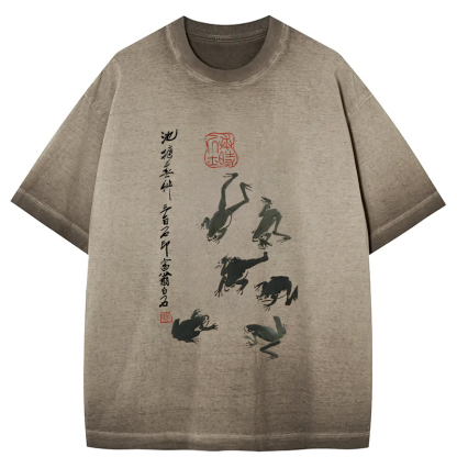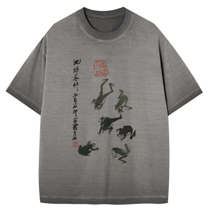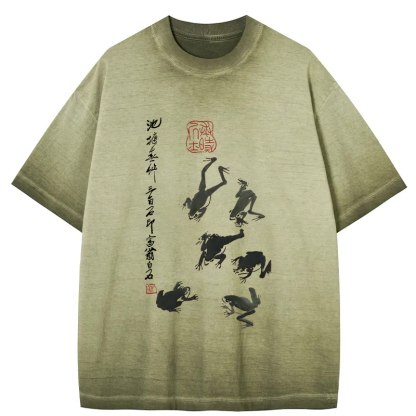 Tokyo-Assassin Retro Japan Frog Gradient Washed T-Shirt